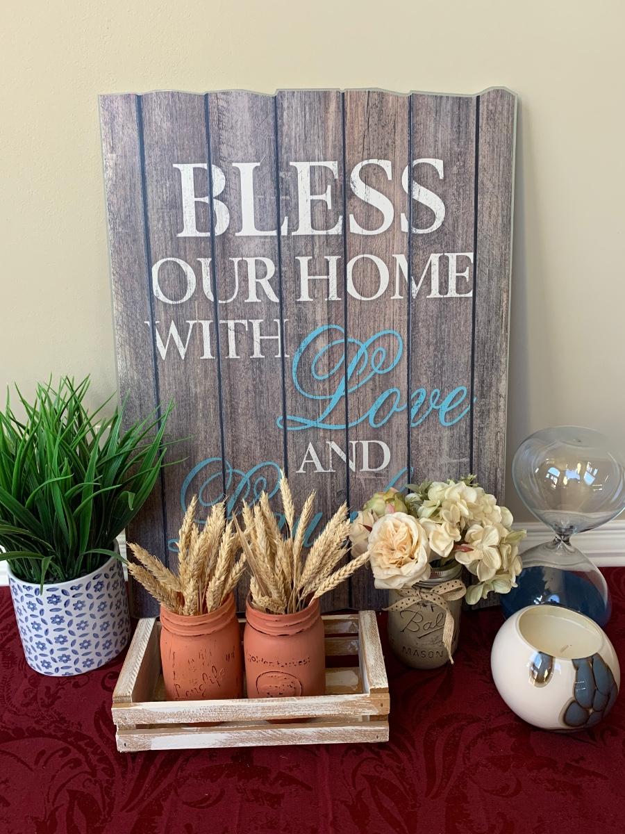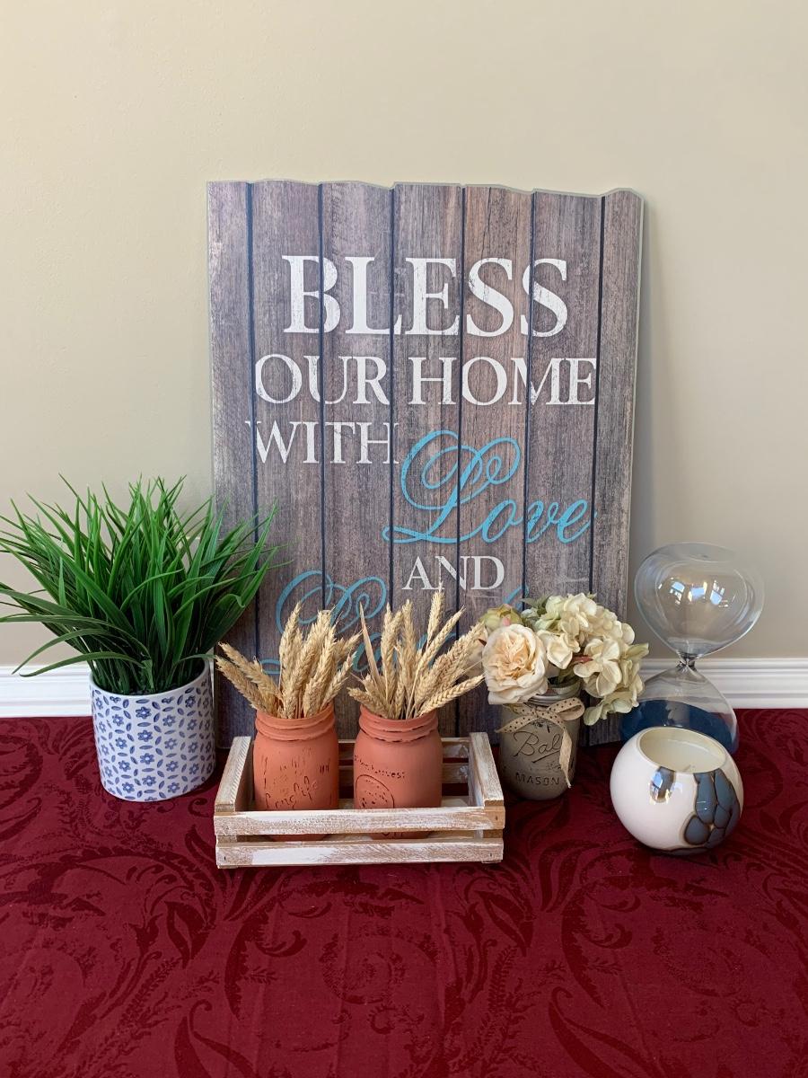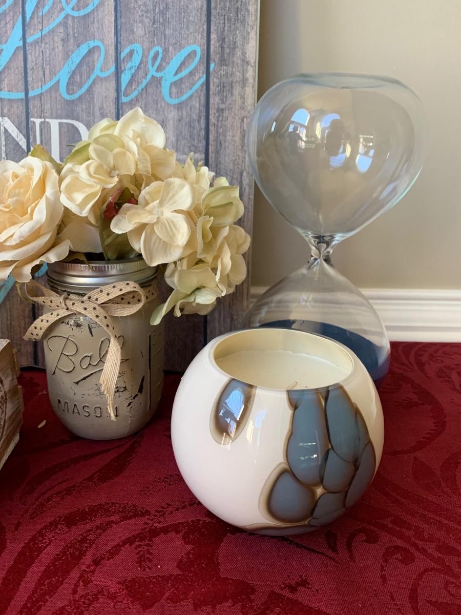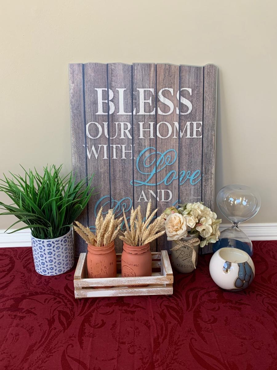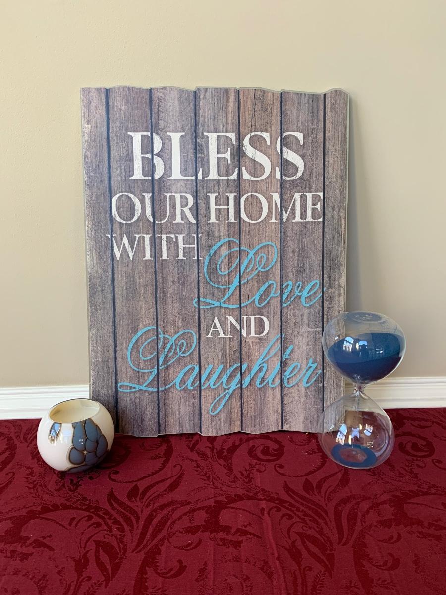 Lot 45R: Home Decor "Love & Laughter" Sign, Hour Glass, Faux Florals & More