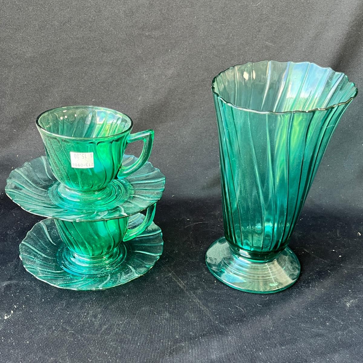 Lot 46 Ultra Marine Swirl Jeannette Glass Depression Era group