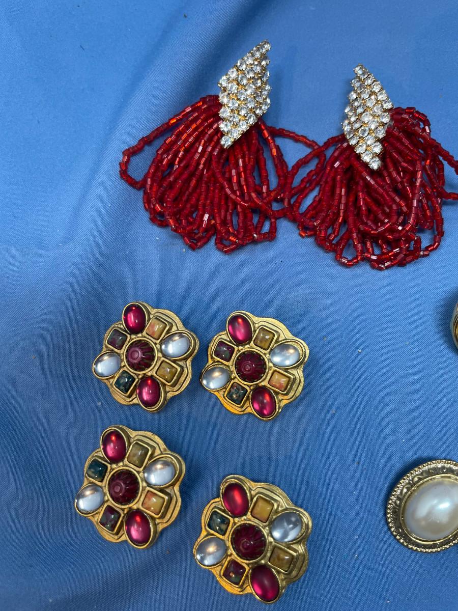 Pierced & clips. Older & newer. Very nice & ready to wear!