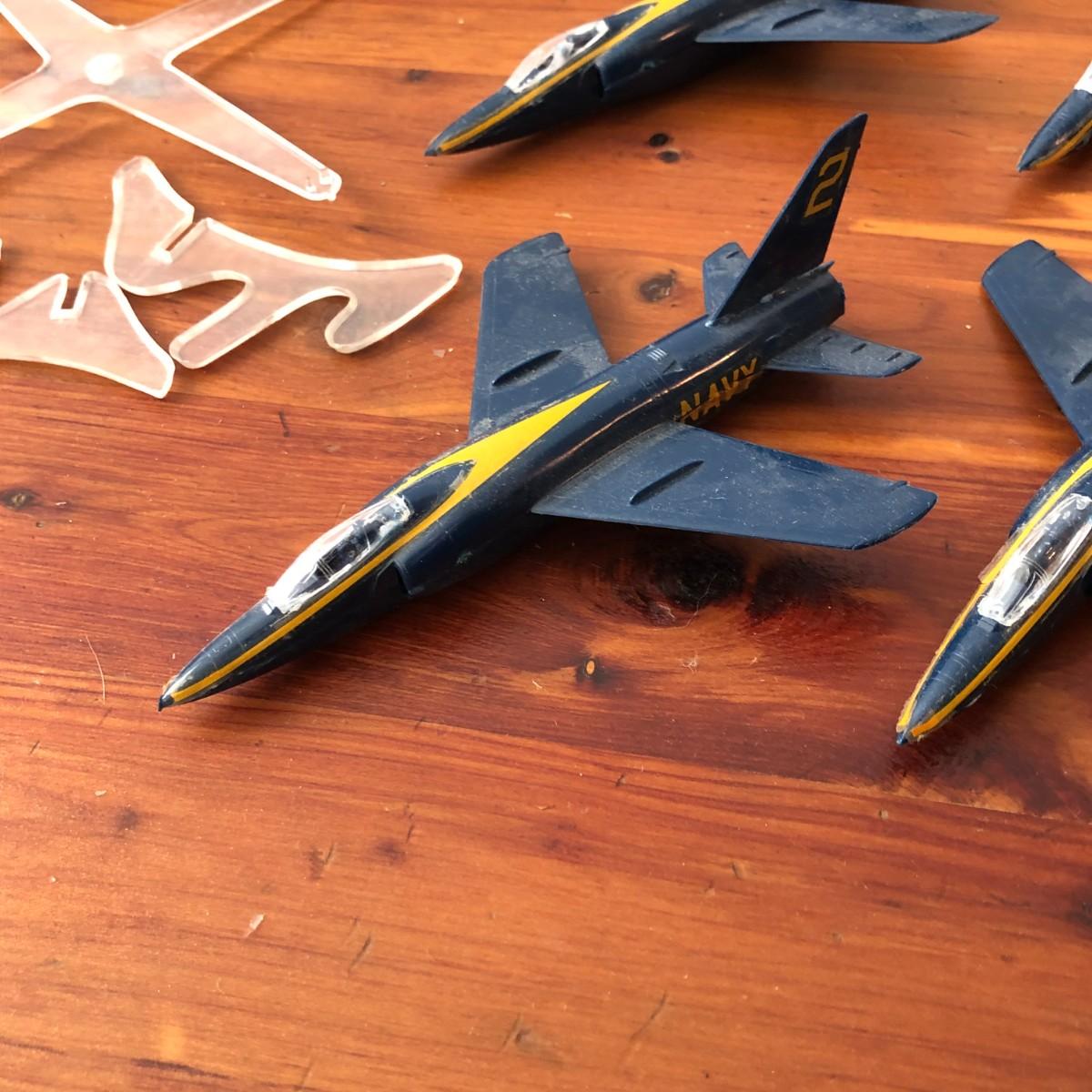 This is a vintage plane kit, but the planes have already been built. The stand is included, but the large piece snapped off and would need to be repaired.
