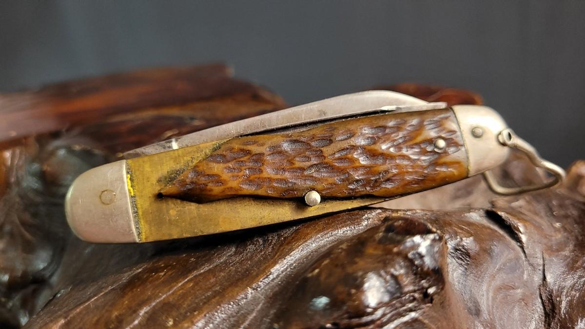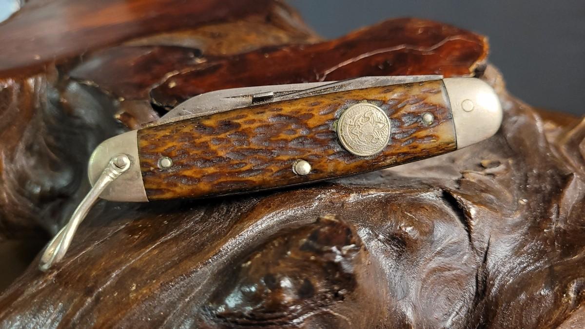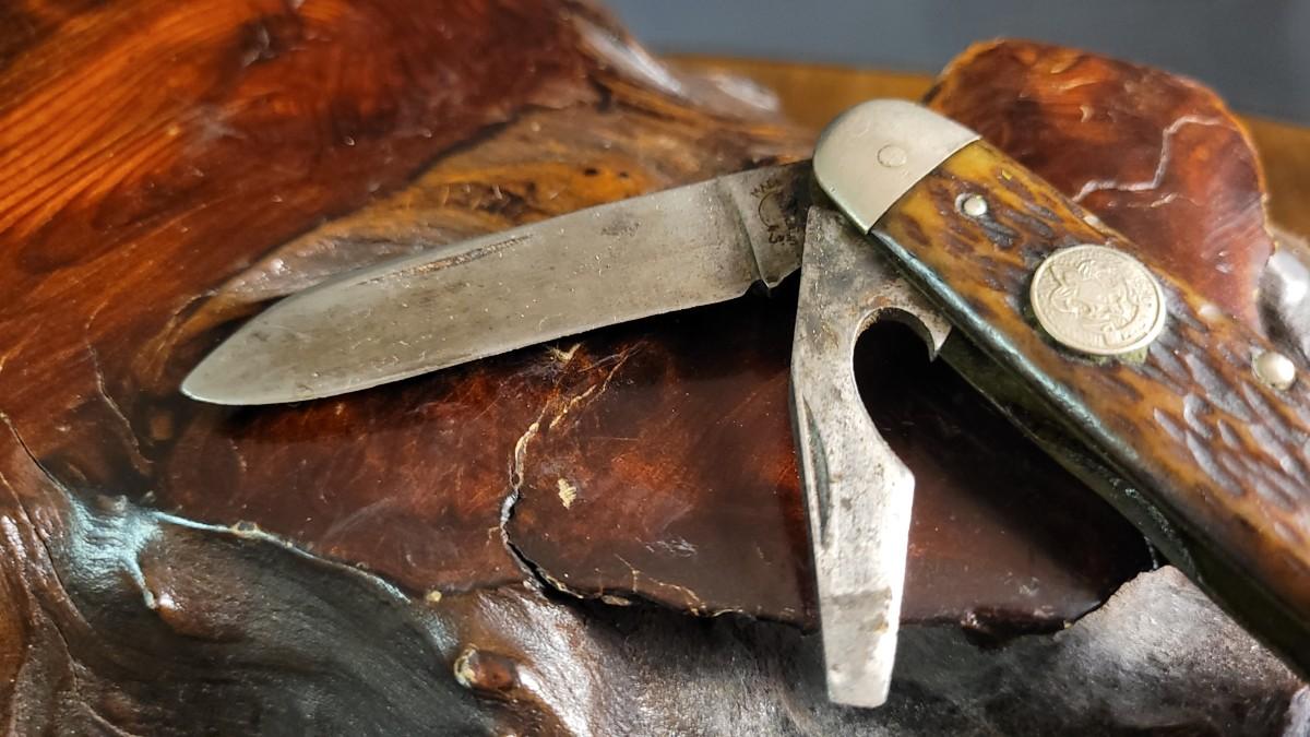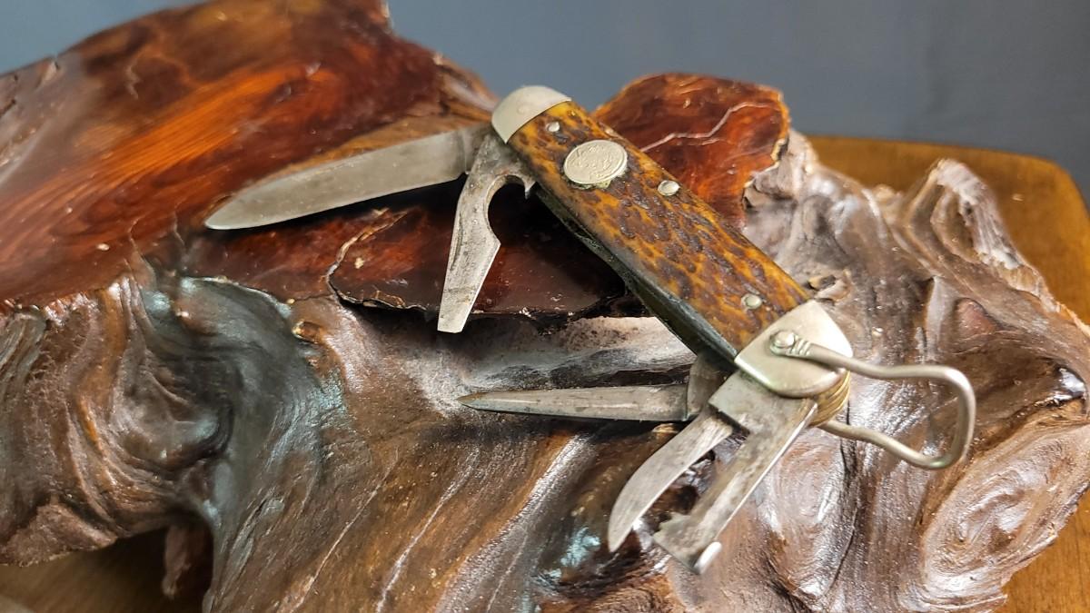 These (3) Knives are each interesting in their own right and could all benefit from some TLC. The Vintage Boy Scout Model is a REMINGTON and the other 2 appear Handcrafted Folk Art with no discernable marks on the blade or handle. The larger bone option is engraved with initials.