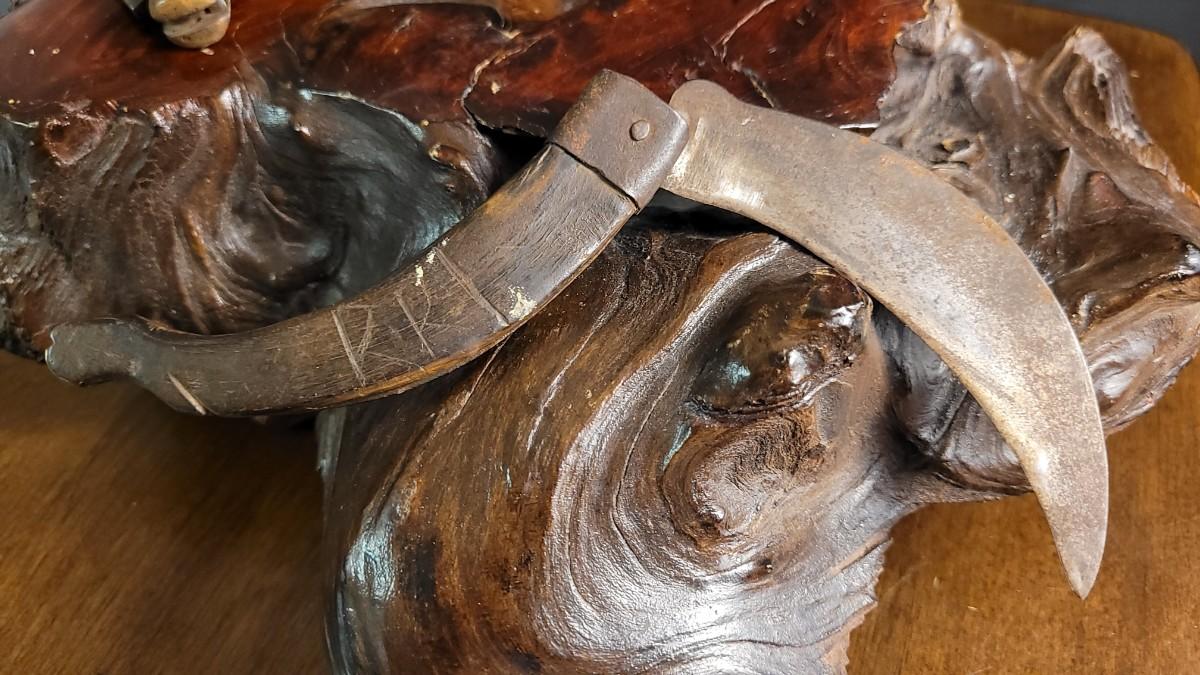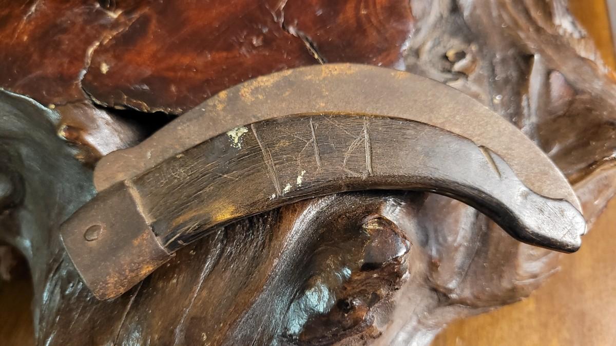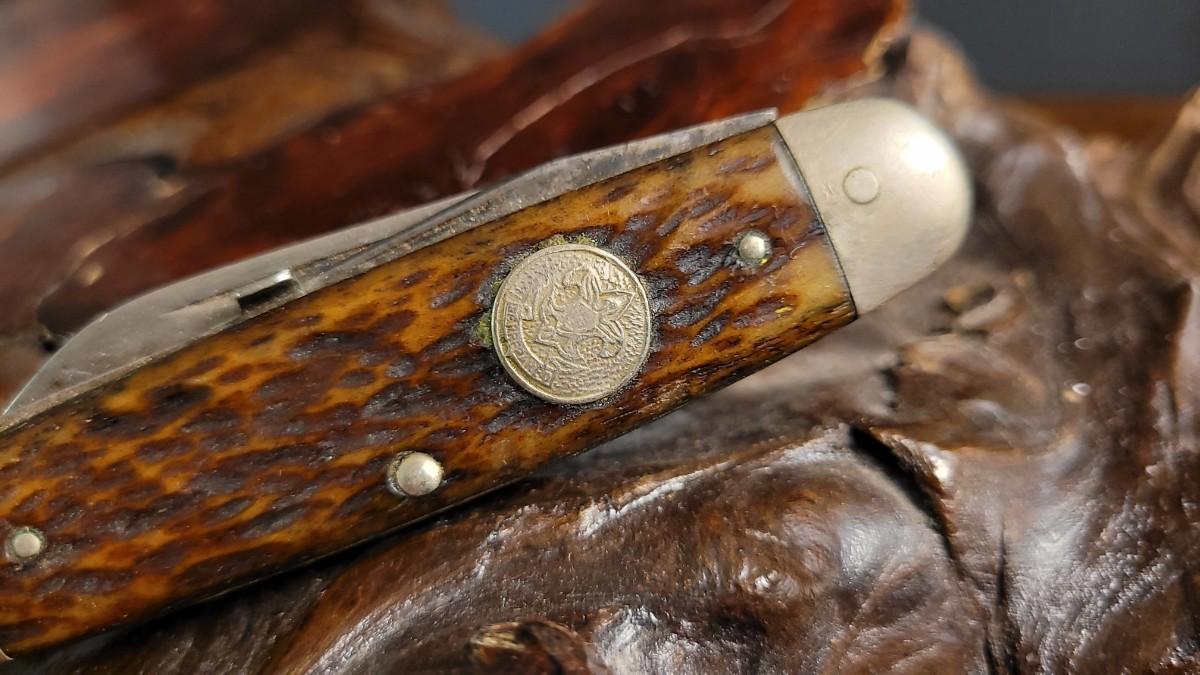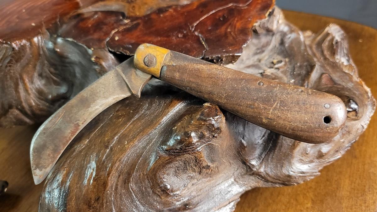 These (3) Knives are each interesting in their own right and could all benefit from some TLC. The Vintage Boy Scout Model is a REMINGTON and the other 2 appear Handcrafted Folk Art with no discernable marks on the blade or handle. The larger bone option is engraved with initials.