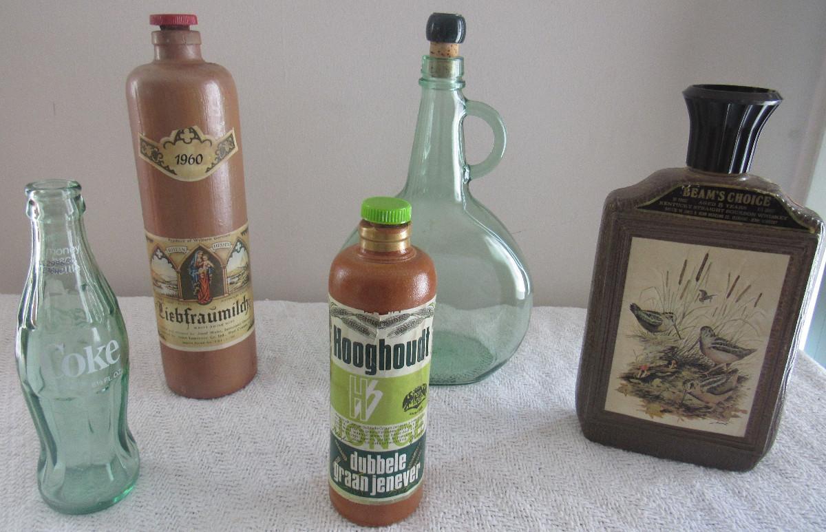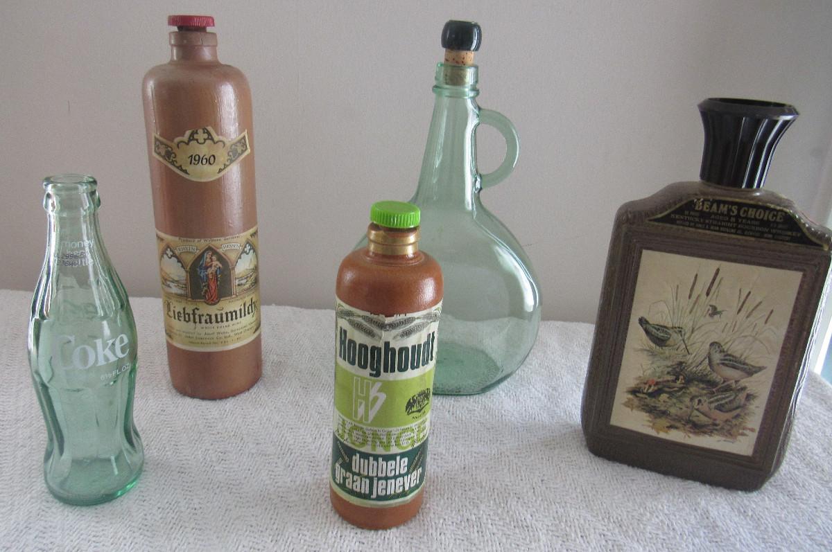 Lot 46 - 5 Old German Liquor bottles & Coke Bottles