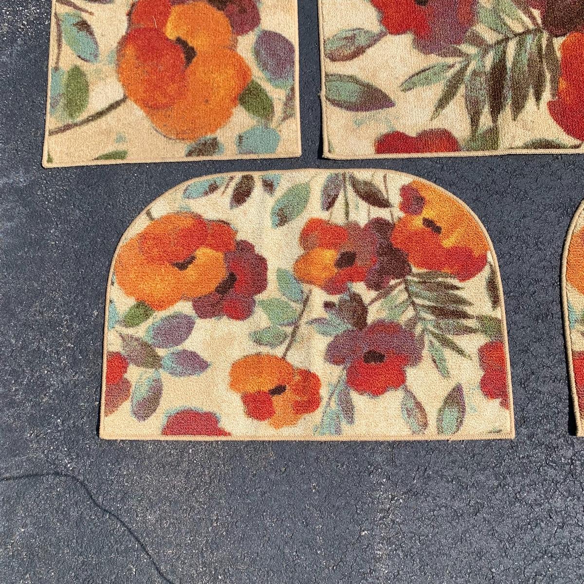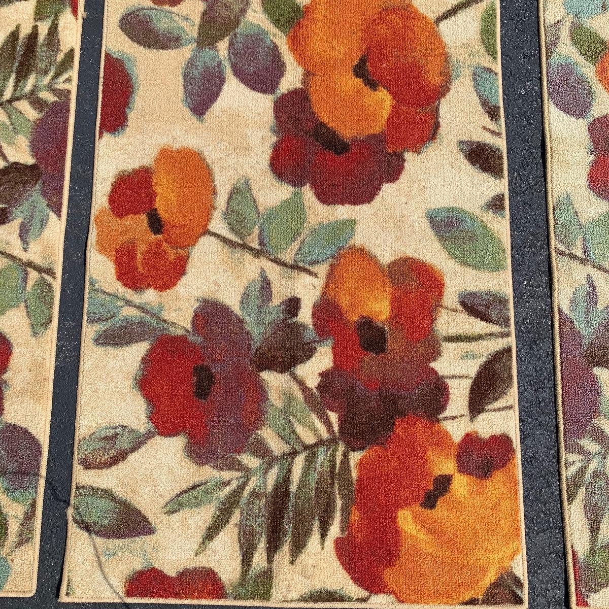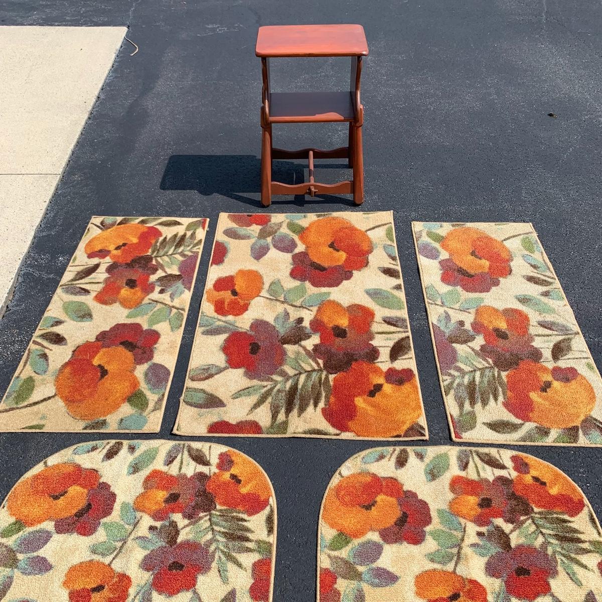 This collection of floral pattern rugs is adorable. Five are included in all, two measure 44” X 20”, two measure 20” X 29”, and the largest is 46” X 20”. All five are in great condition, and appear to be unused. Also included is a cute table measuring 17” wide X 13” deep X 26” tall. This table is also in good, sturdy condition. Local pickup only.