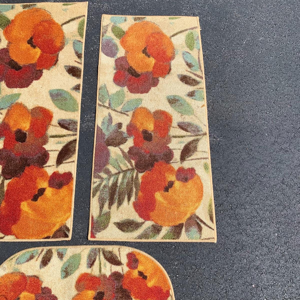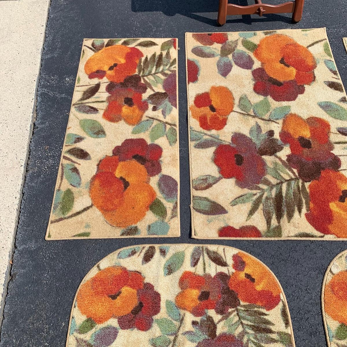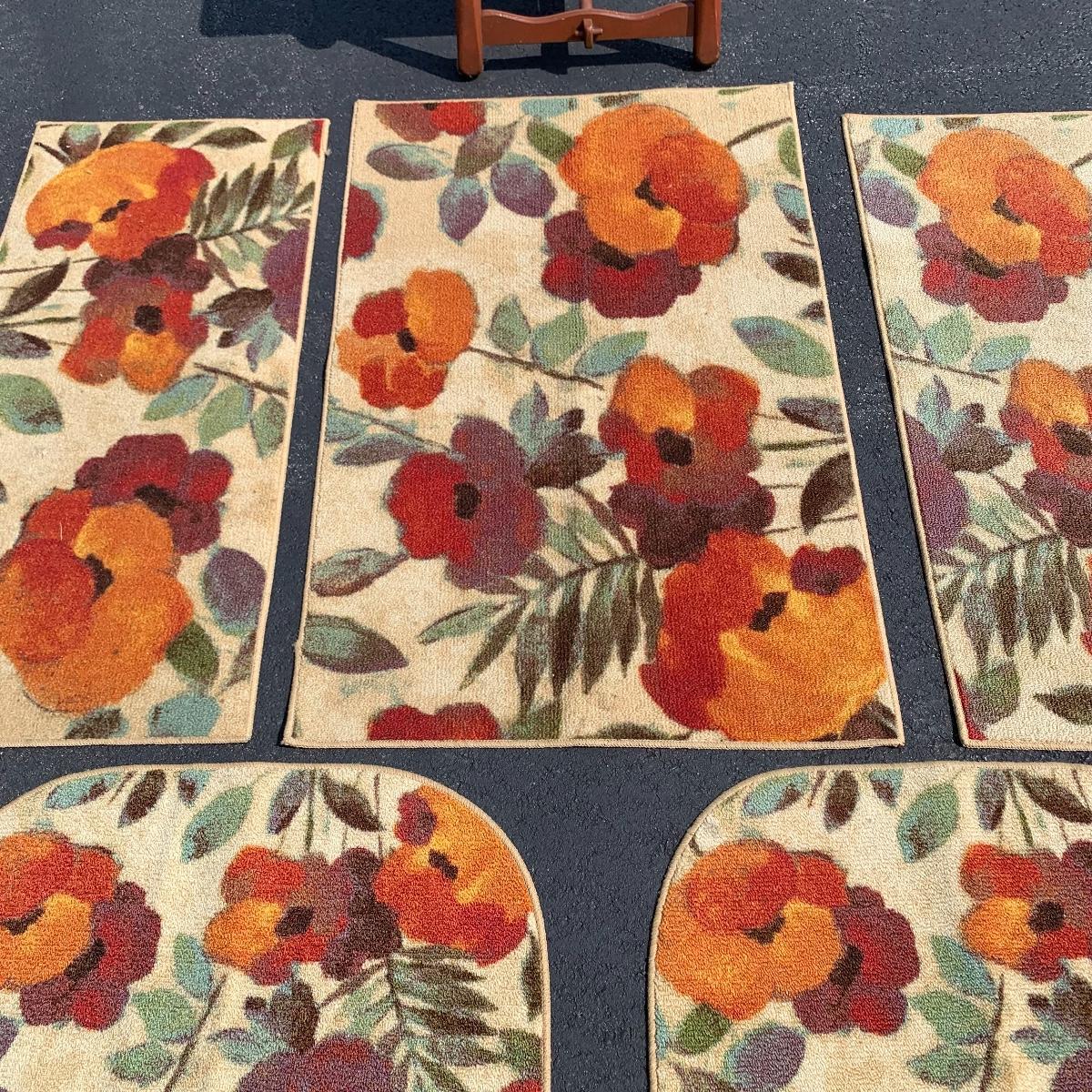 This collection of floral pattern rugs is adorable. Five are included in all, two measure 44” X 20”, two measure 20” X 29”, and the largest is 46” X 20”. All five are in great condition, and appear to be unused. Also included is a cute table measuring 17” wide X 13” deep X 26” tall. This table is also in good, sturdy condition. Local pickup only.