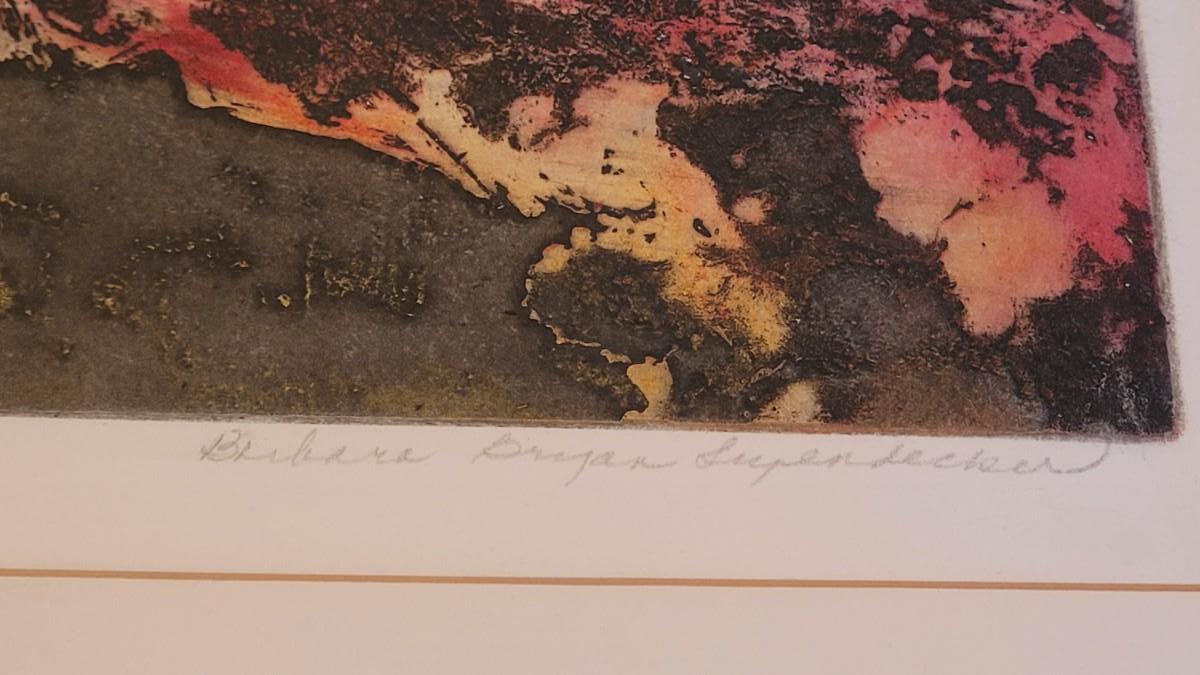 Barbara was a Professional Artist that exuded talent. She taught at the School of the Art Institute of Chicago and also at Front Range. She exhibited all over the United States. A collection of her work will be listed in the auctions we are hosting. She worked in and mastered several different mediums. Find a piece that you enjoy and get one of Barbara's artworks for your own collection. Excerpt from Art Lab Fort Collins Past Exhibition: In Barbara’s own words: I always like to experiment with and change how I express myself in my art. This process involves not only which medium I choose but also how I use it, andI often select more than one medium at a time. Whether I paint on paper or canvas, draw, etch, or collage photographs depends upon the idea or energy of my particular prevailing muse. My drawing is always a pivotal point for me, especially when I am working from the human figure. Regardless of the sujet, though, I use life experiences that have both emotionally and visually impacted me. I am always tempted to mix abstract thought with quasi identifiable subject matter. As I am writing this statement I am looking closely at the mountain that is directly across from my house, and as I watch, I see a jet aircraft’s white contrail moving far above the peak through the clear sky. I know it’s going hundreds of miles an hour, but the cottony contrail seems to be developing so very slowly. If I were to draw or paing this scene, I would need to make many decisions, starting with the desire not to render it only as I see it now but also to represent it as an experience that shows how t his kinetic and emotional vision has affected me. A major question would be, “Which medium (or media) should I use in order to express and communicate this experience?” The artists whom I have admired and learned from throughout history are those who get inside themselves and allow their thoughts and emotions to dominate their works. I believe it necessary that in order to create honesty, one needs to show how presenting the mess of things that constitute our lives can be seen in art that is essentially stable, coherent and believe it or not, realistic.