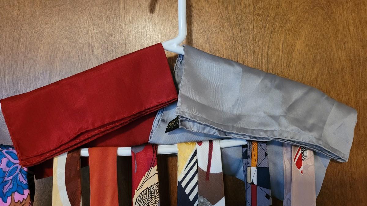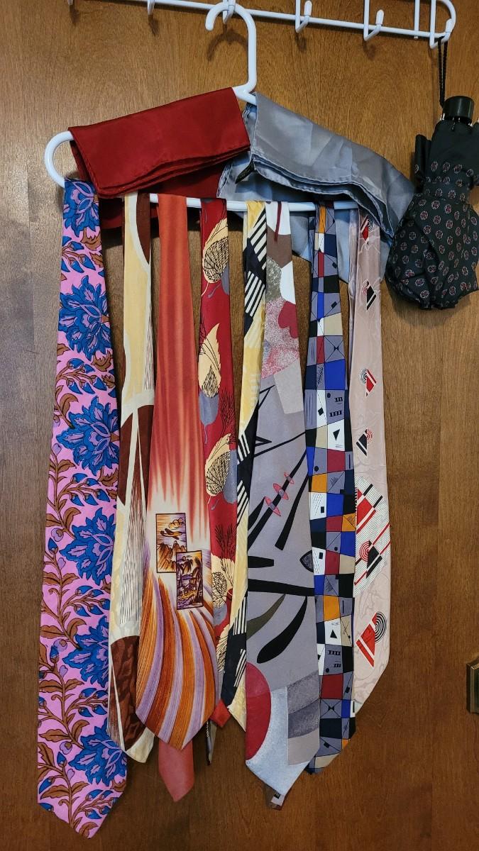 Lot 46: Vintage Mid Century Men's Ties, Silk Pocket Squares and Umbrella