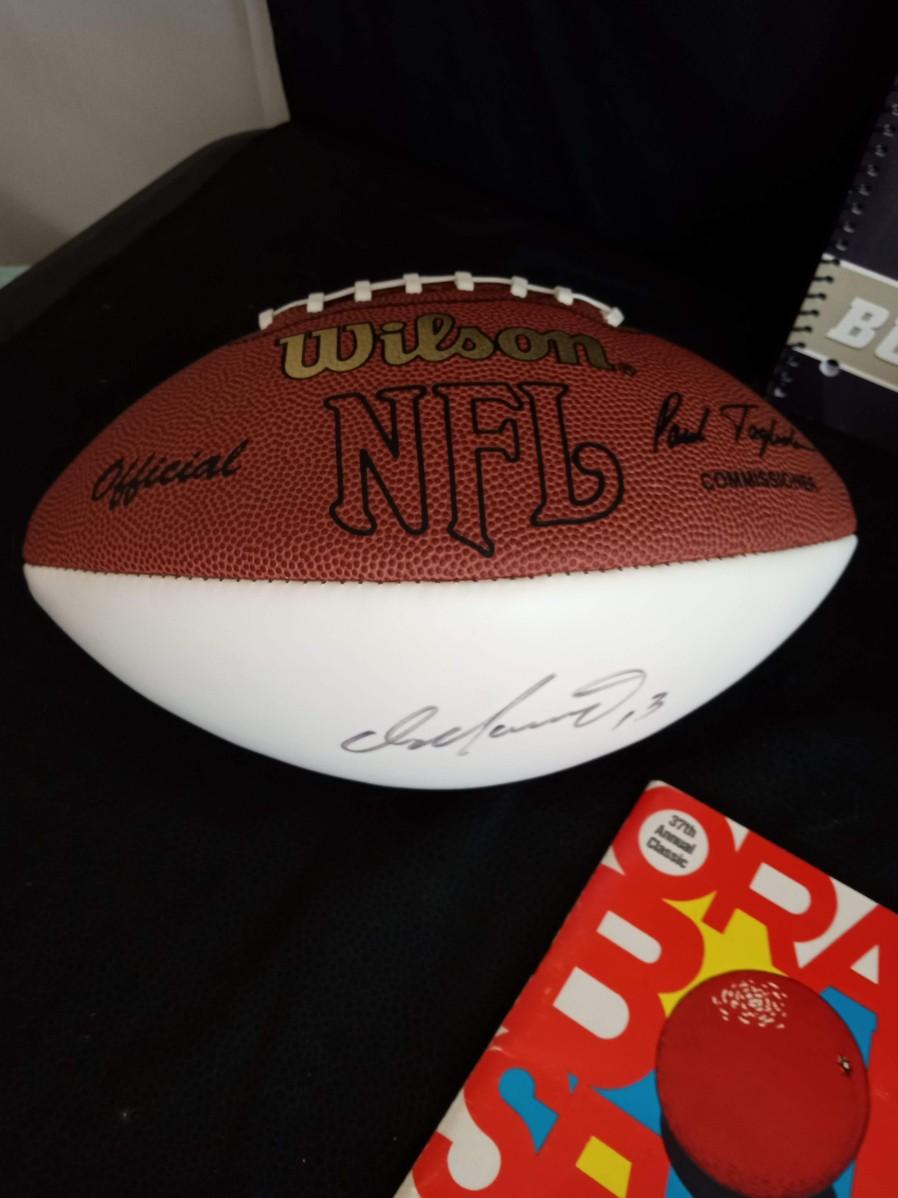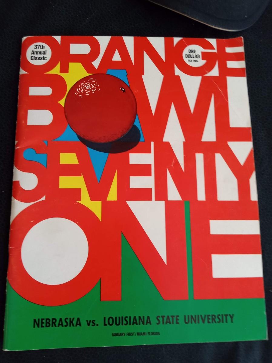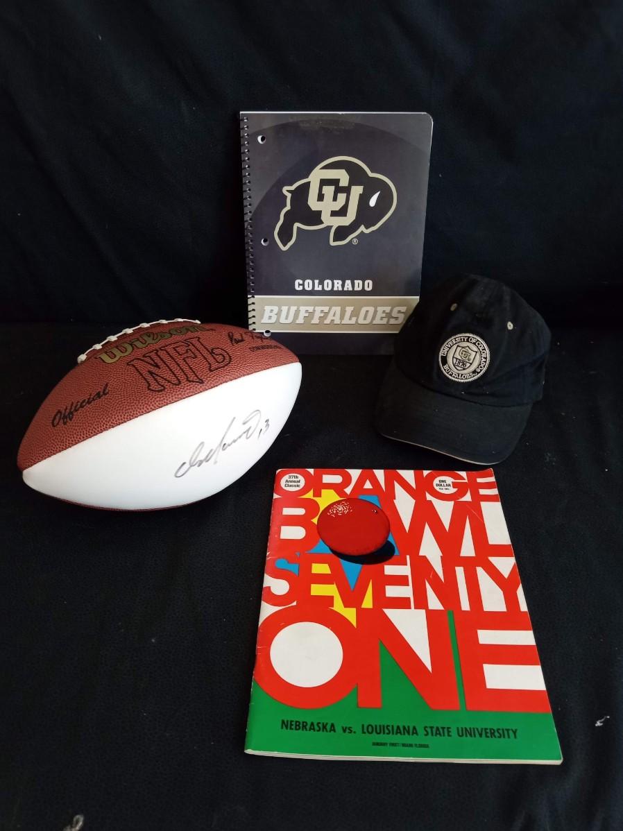 AUTOGRAPHED FOOTBALL, CU BUFFS BALL CAP AND NOTEBOOK AND ORANGE BOWL PROGRAM FROM 1971