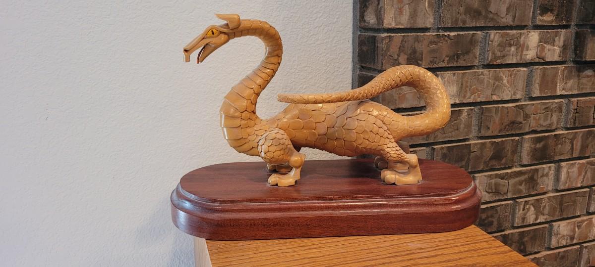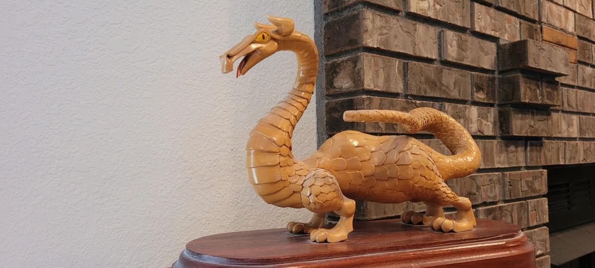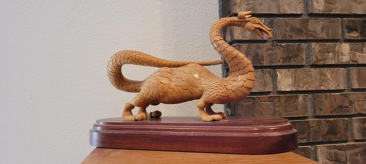 Lot 46: Hand Carved Wooden Dragon SIGNED by Artist