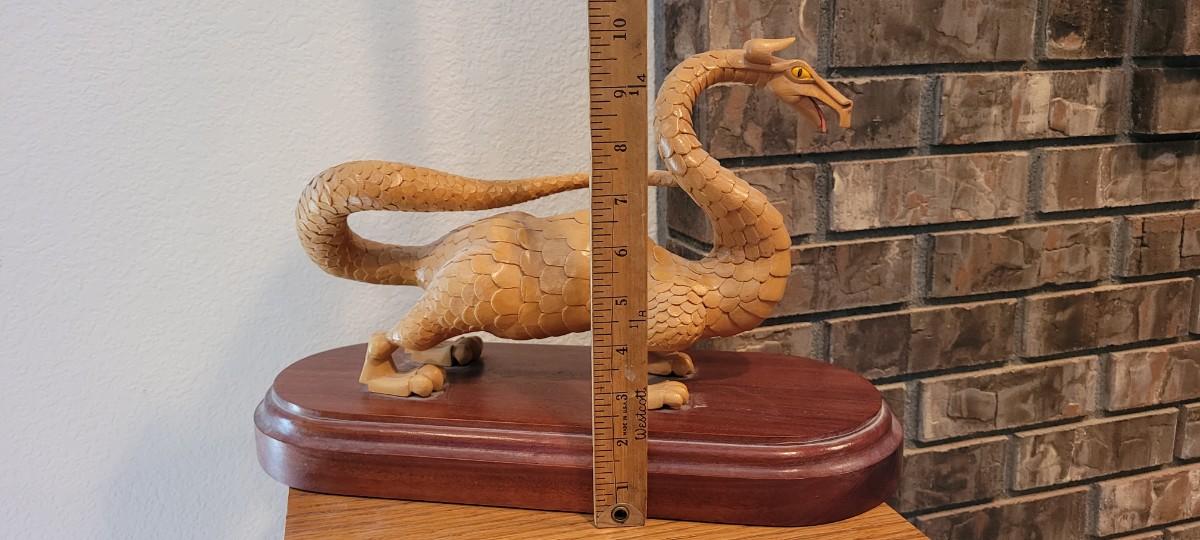 Highly detailed Sculpture of a Dragon that was hand carved by a talented artist. SIGNED on underside.