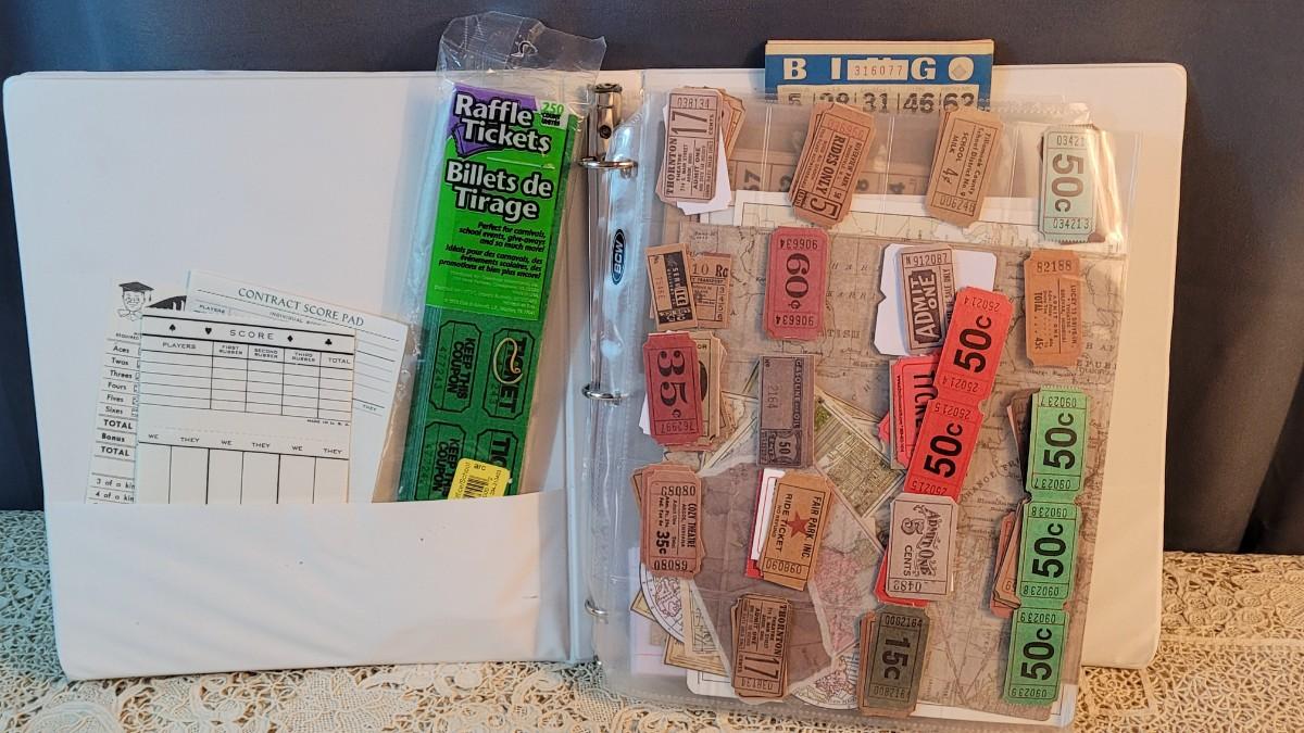 Lot 46: Binder Filled with Vintage Raffle Tickets, Bingo & other kinds of Cards