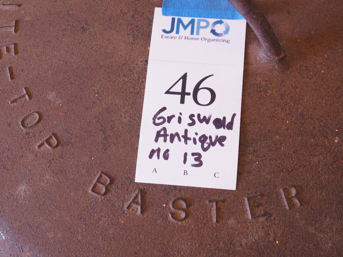 Lot 46  Antique Griswold caldron with Cross logo and Erie PA logo