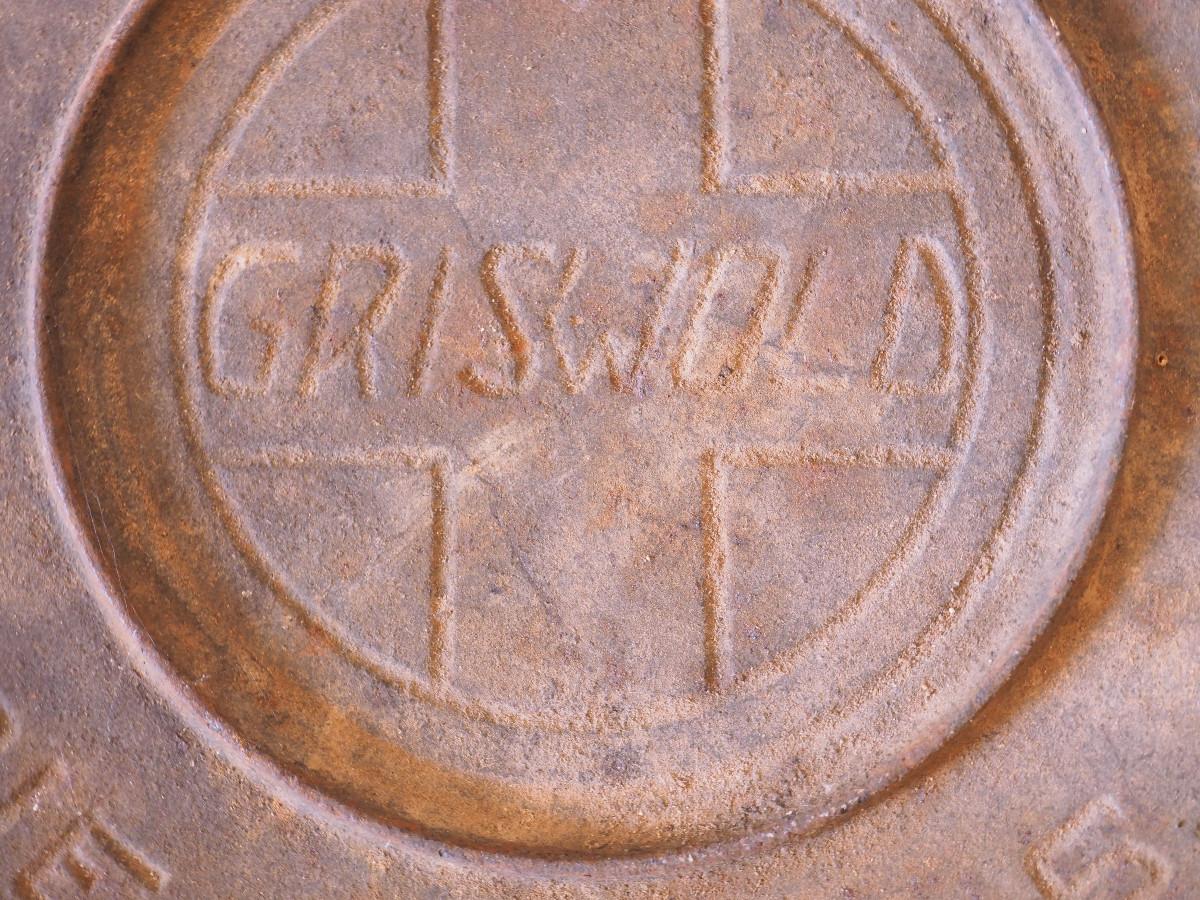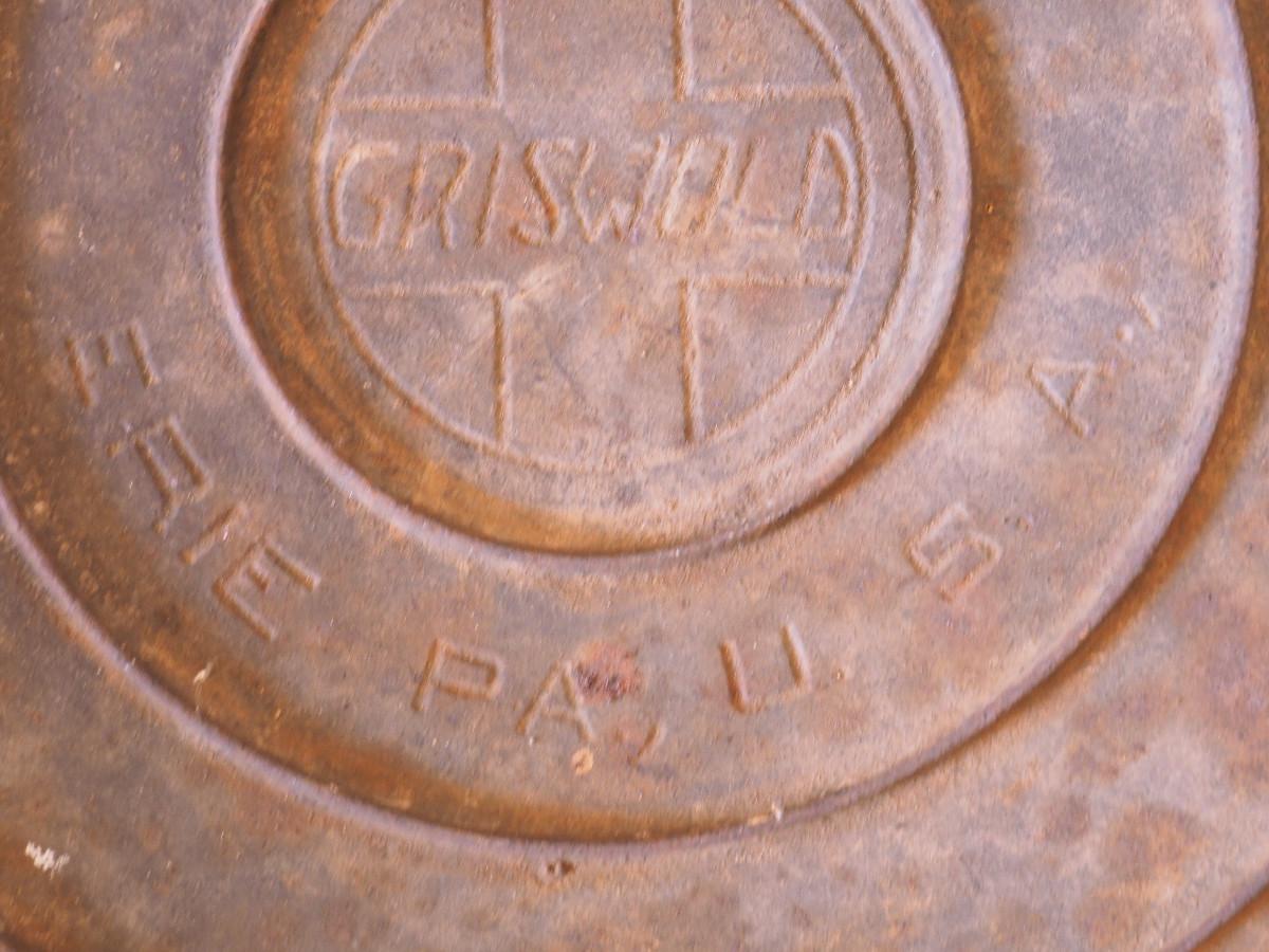 Lot 46 Antique Griswold caldron with Cross logo and Erie PA logo