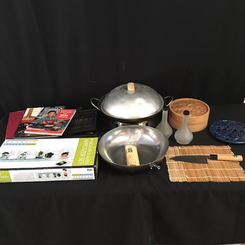 Whip up dinner International style with this great selection of Asian cooking essentials including wok, stir fry pan, cookbooks, appetizer set, shipindiaokedao fruit and vegetable carving set and more. Wok measures 13.75”D.