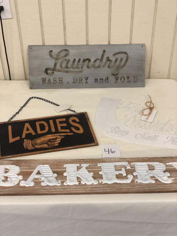 Lot 46 Bakery, Laundry, Ladies/Gentleman, Flea Market Signs