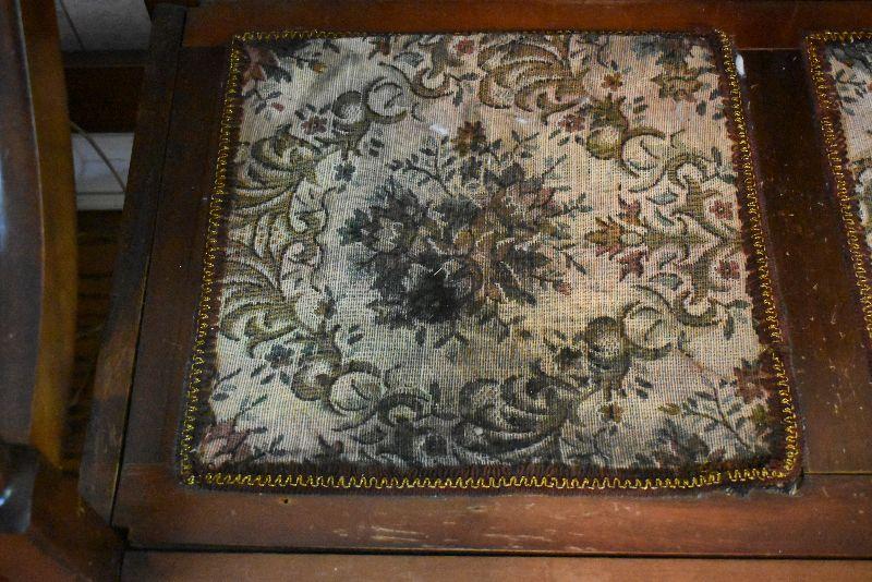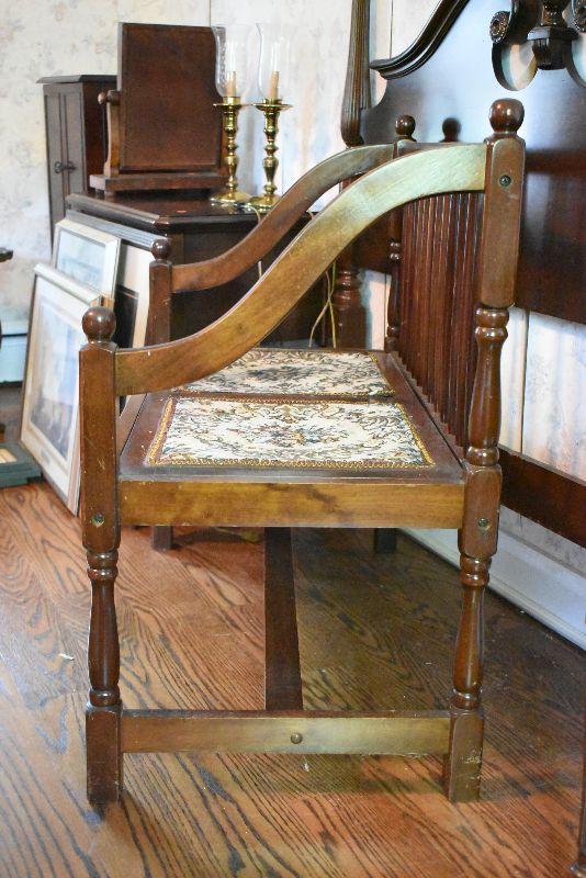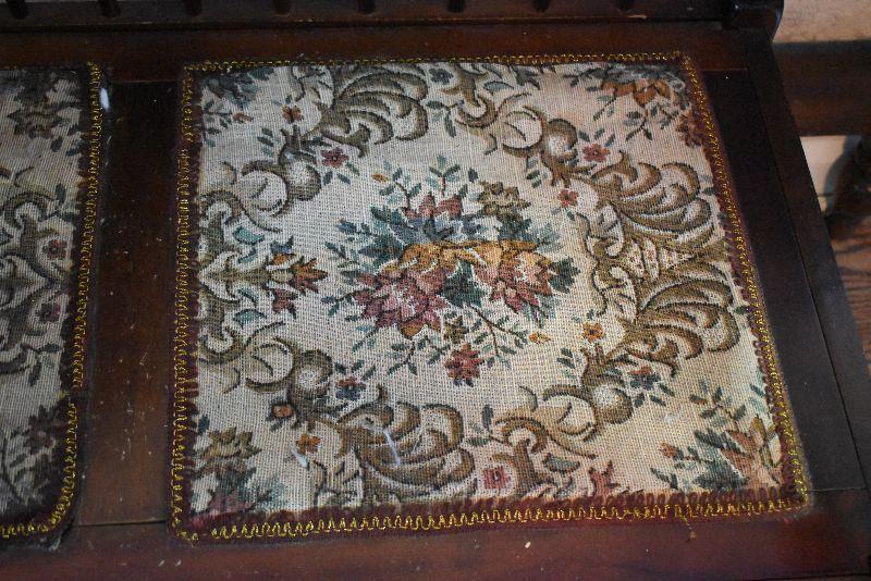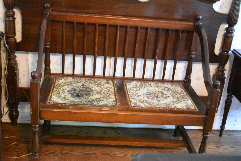Vintage bench with fabric seats Wear noted. Bench is 37 inches long. Bring help to move from second floor.