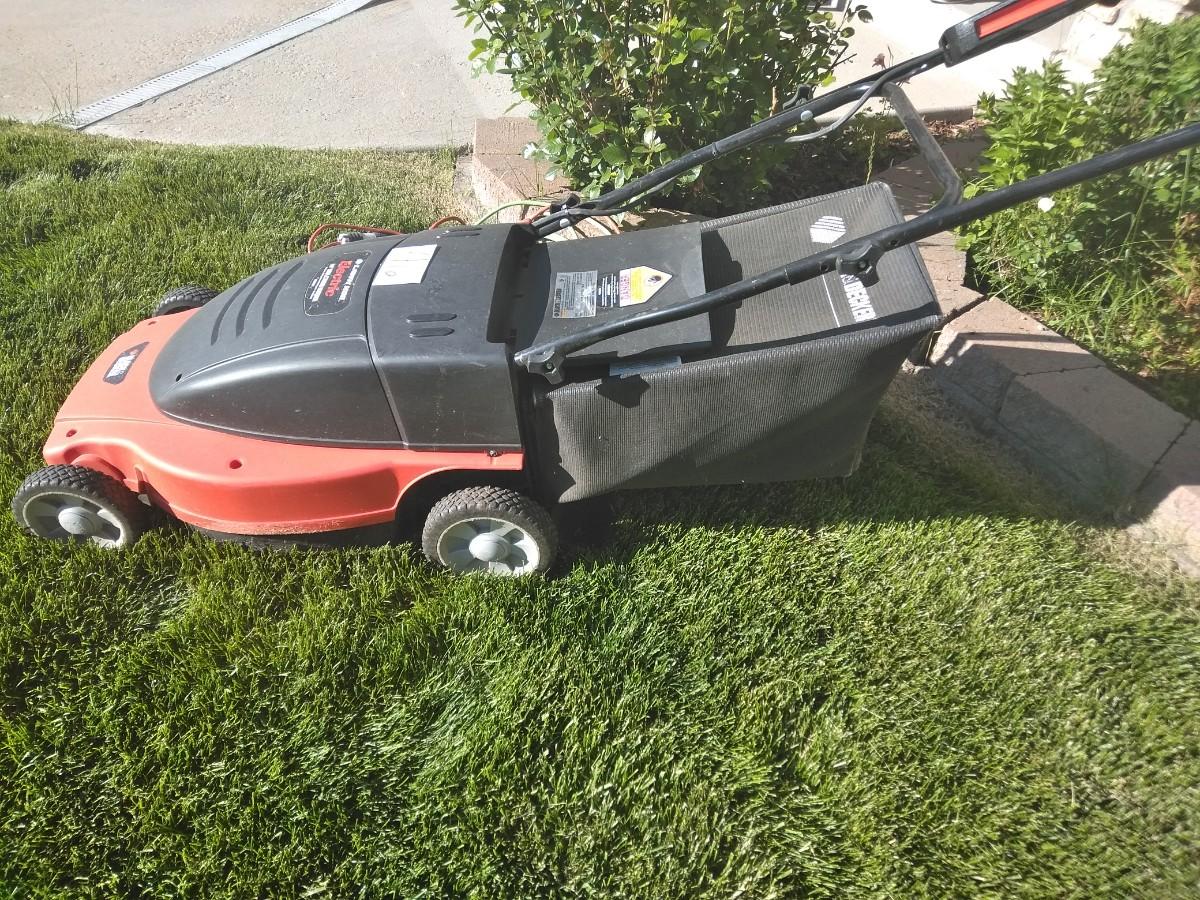 BLACK AND DECKER ELECTRIC LAWN MOWER WITH EXTENSION CORDS.