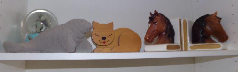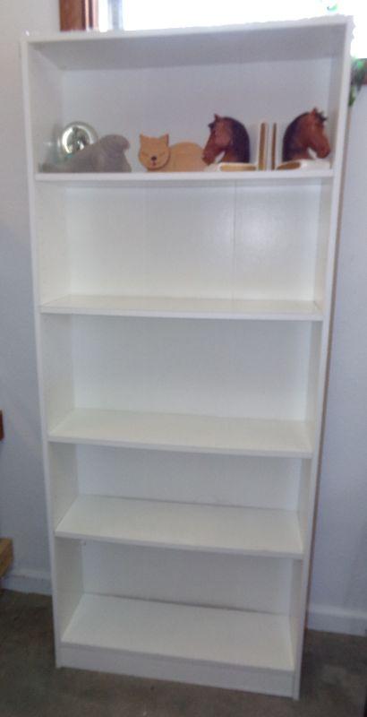 WHITE BOOKCASE AND FEW KNICK KNACKS