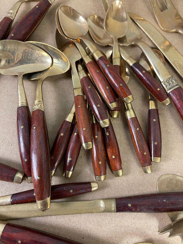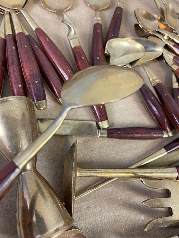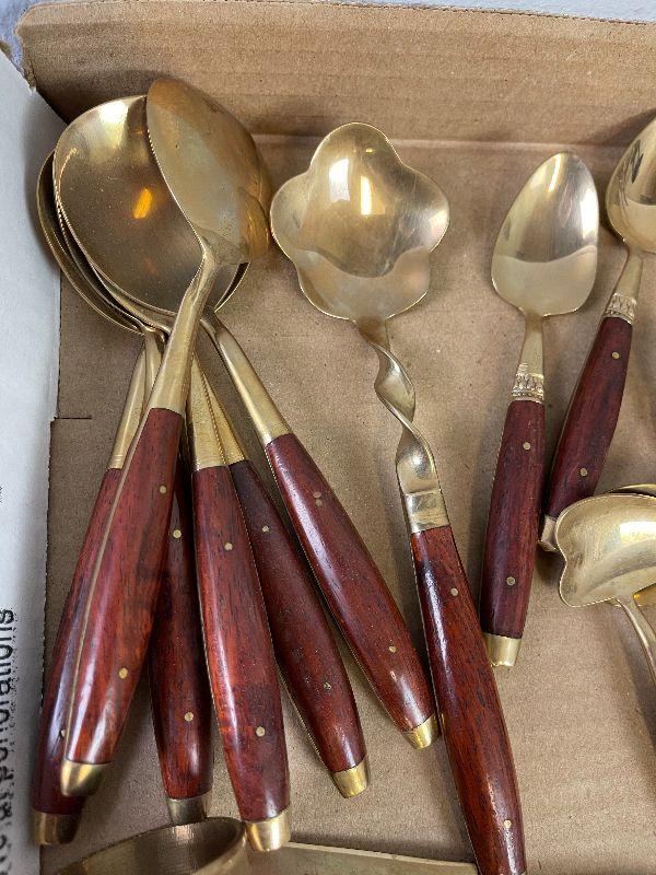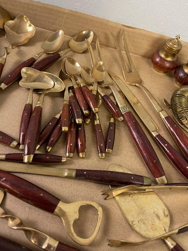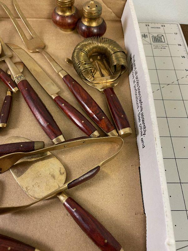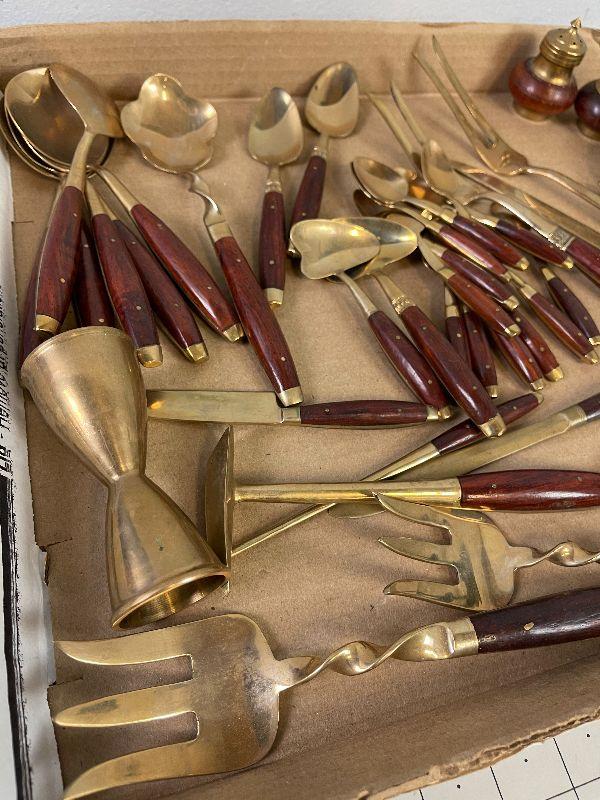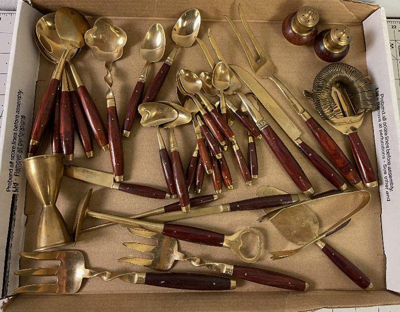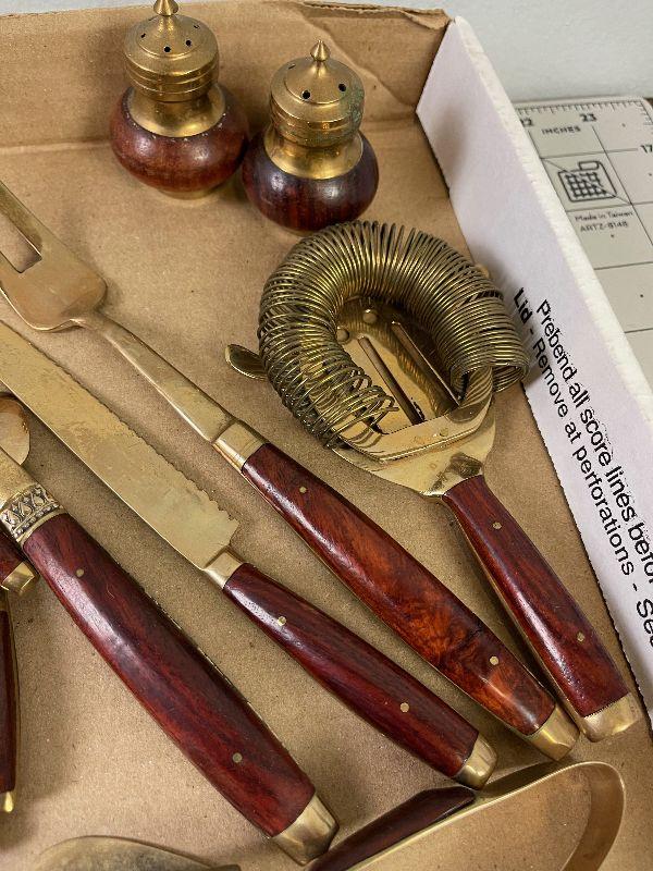 Lot #46 Brass and Teak Serving, Demitasse Spoons, Bar Ware