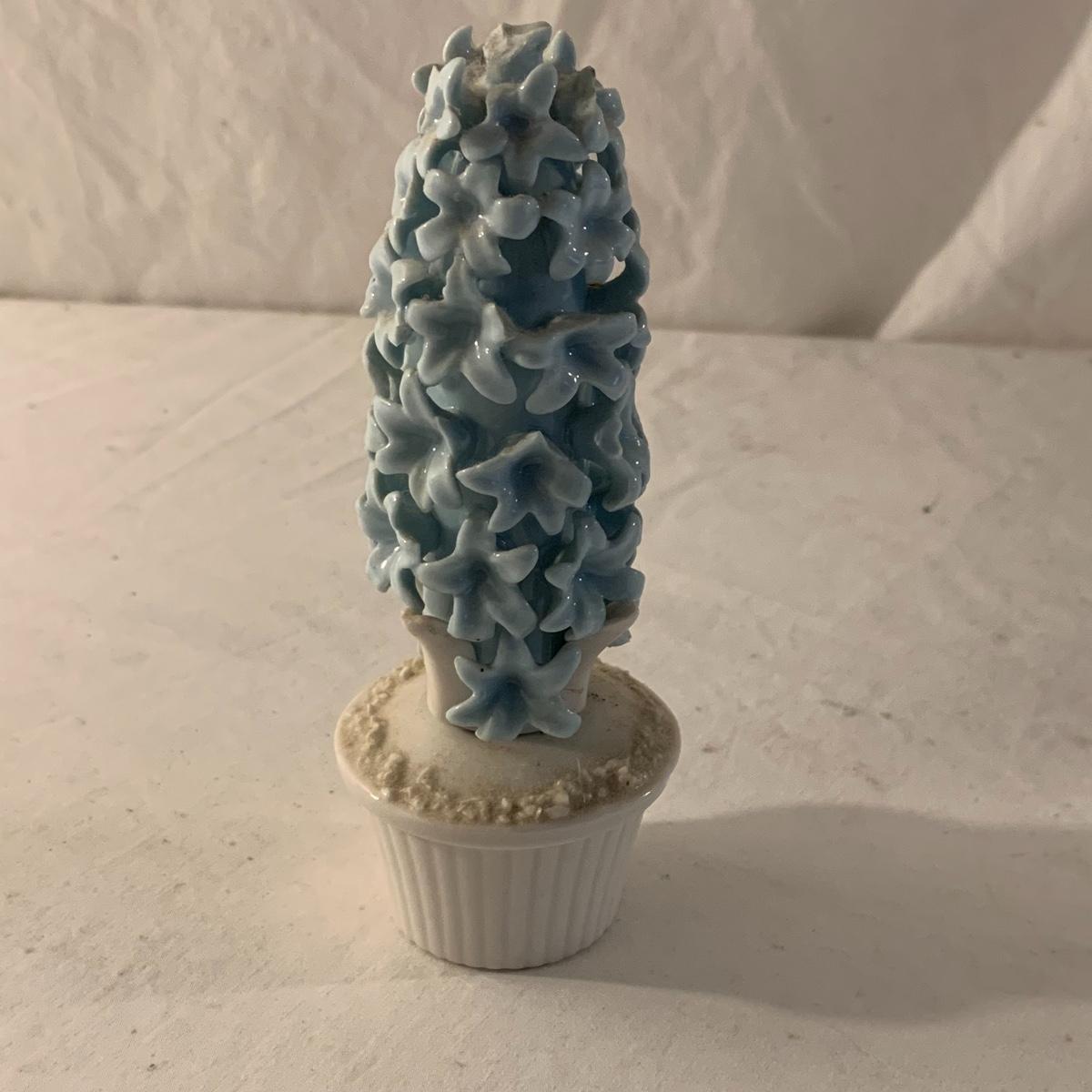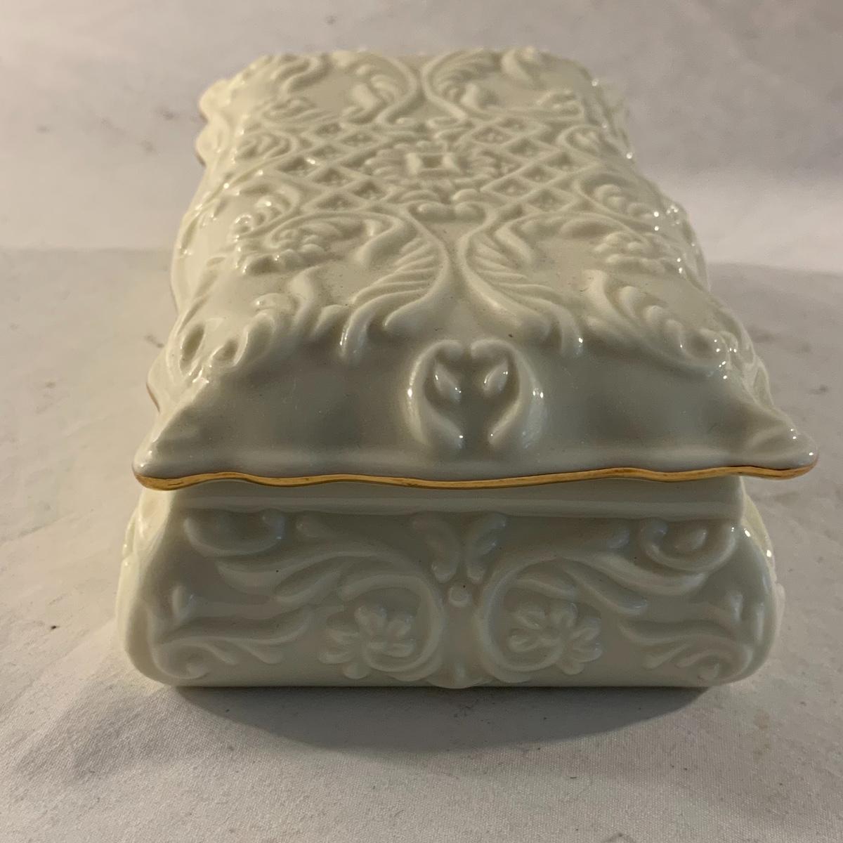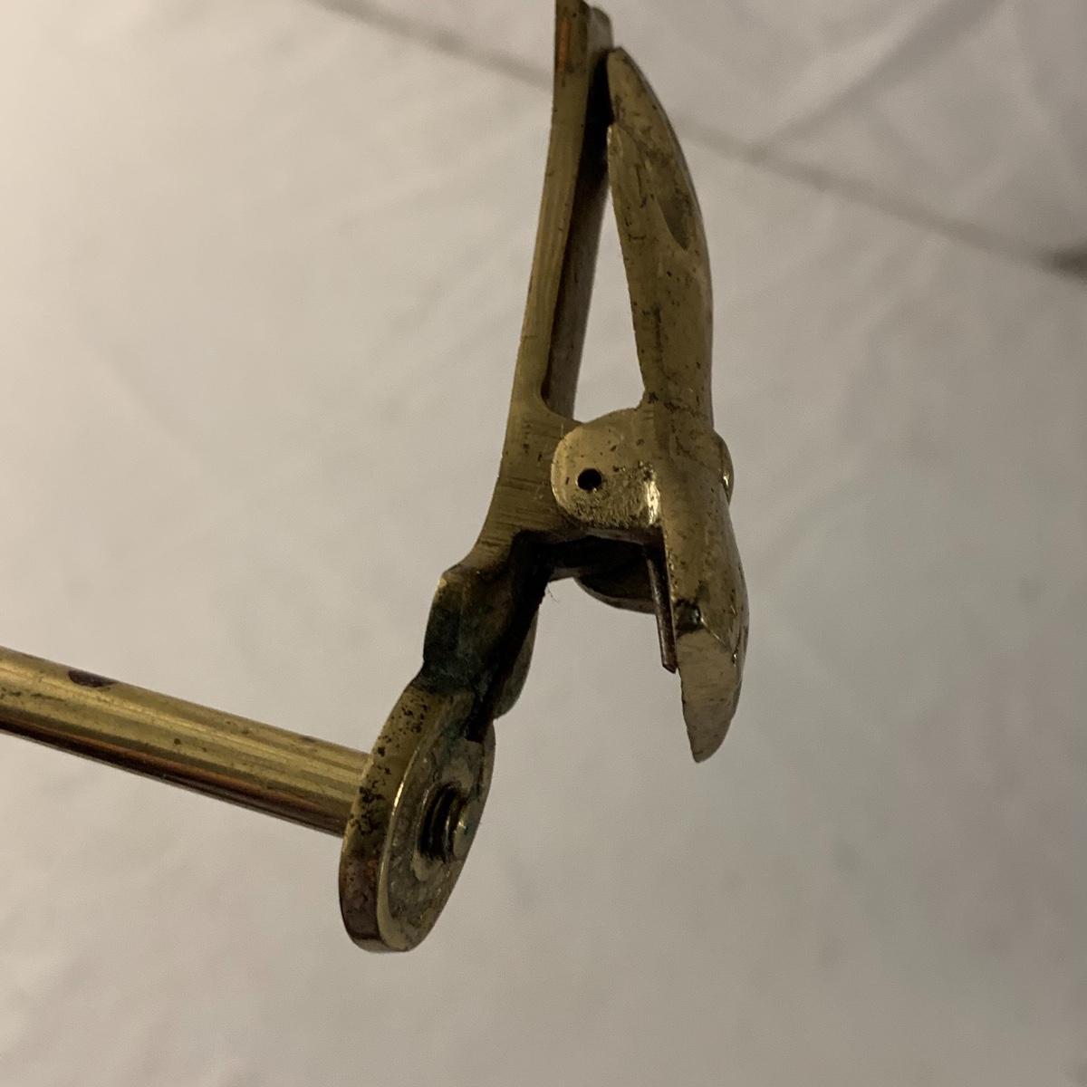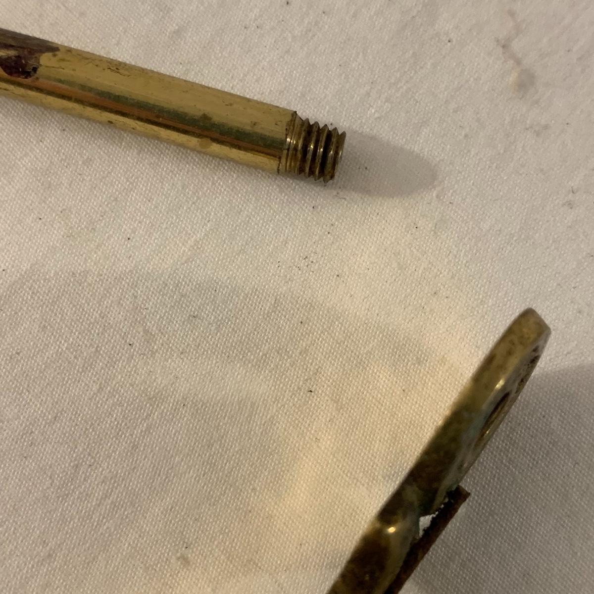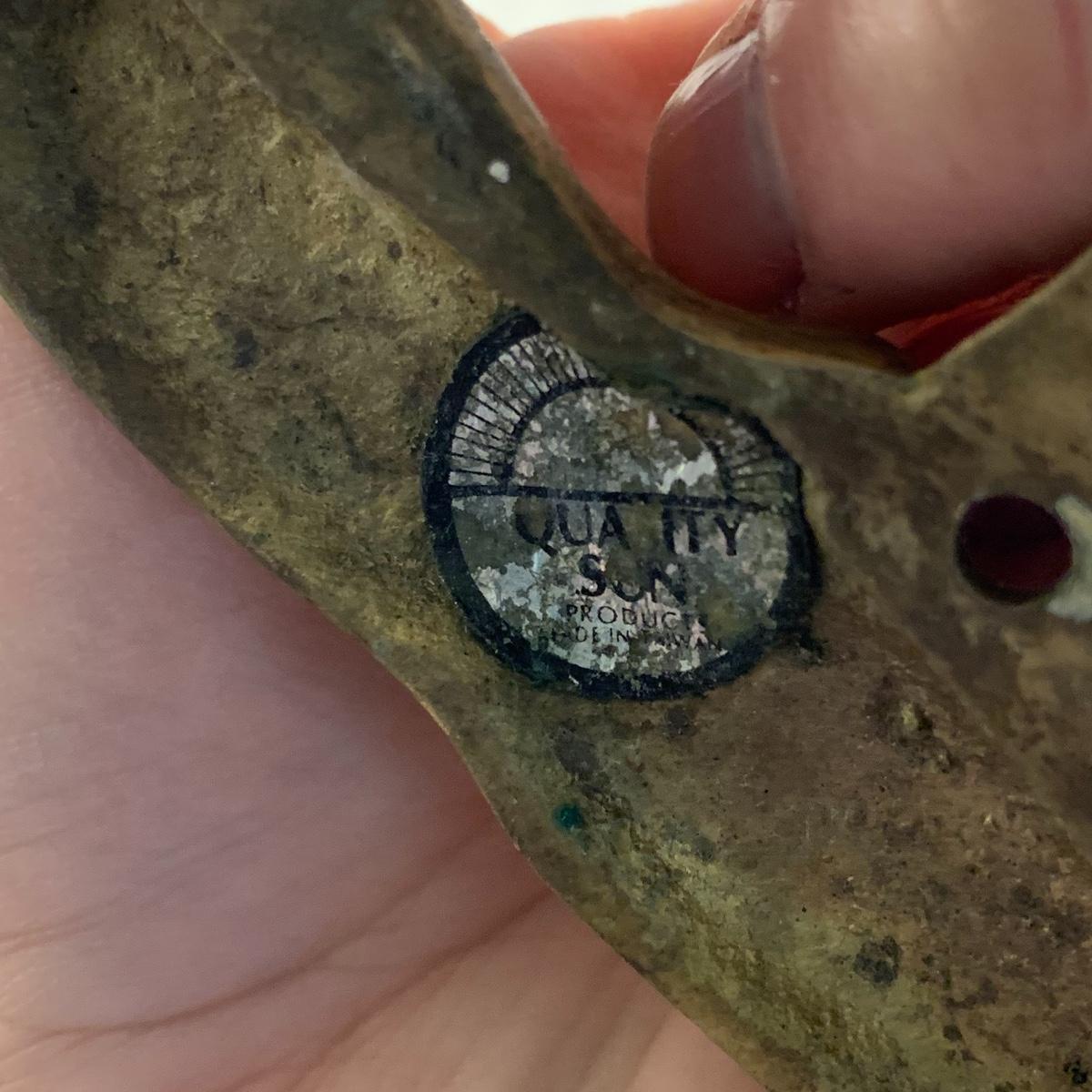 This lot contains an eclectic collection of brass and vanity items. There is a lovely antique countertop mirror in an ornate brass frame and stand. It can stand straight or be at an angle. It’s a little dusty and has some tarnishing from its age, but is overall in good condition. It is 15.5” tall. You’ll also find a brass soap holder that can be mounted to the wall. It’s attached to a little baskets that you can put other bathroom items in. There is some oxidation present on the soap holder. There are two brass duck key hooks that mount to the wall. They feature little baby ducks swimming alongside their mama and each have four hooks and are 7” long. There are two brass whale shaped hooks as well, that each have one hook and are 4” long. There is also an item that has a brass bar and two hand-shaped clips on the end that measures about 10” long. In addition to the brass items there is a ceramic box, a glass dish, and a ceramic perfume bottle. The ceramic box is an ornate white box with a lid, perfect for holding jewelry or other small items. The lid is lined with a gold edge. It measures 6” x 4” x 2”. The glass dish is translucent with a neat spiral design and has a gold border. The perfume bottle is in the shape of a floral topiary. Some of the flowers have broken off. It still as a lovely aroma emanating from it. Shipping available.