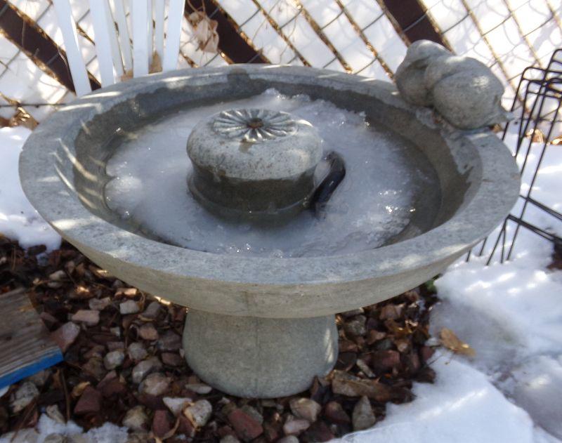 Fountain with 2 birds perched on its edge, measures 21"x12" tall