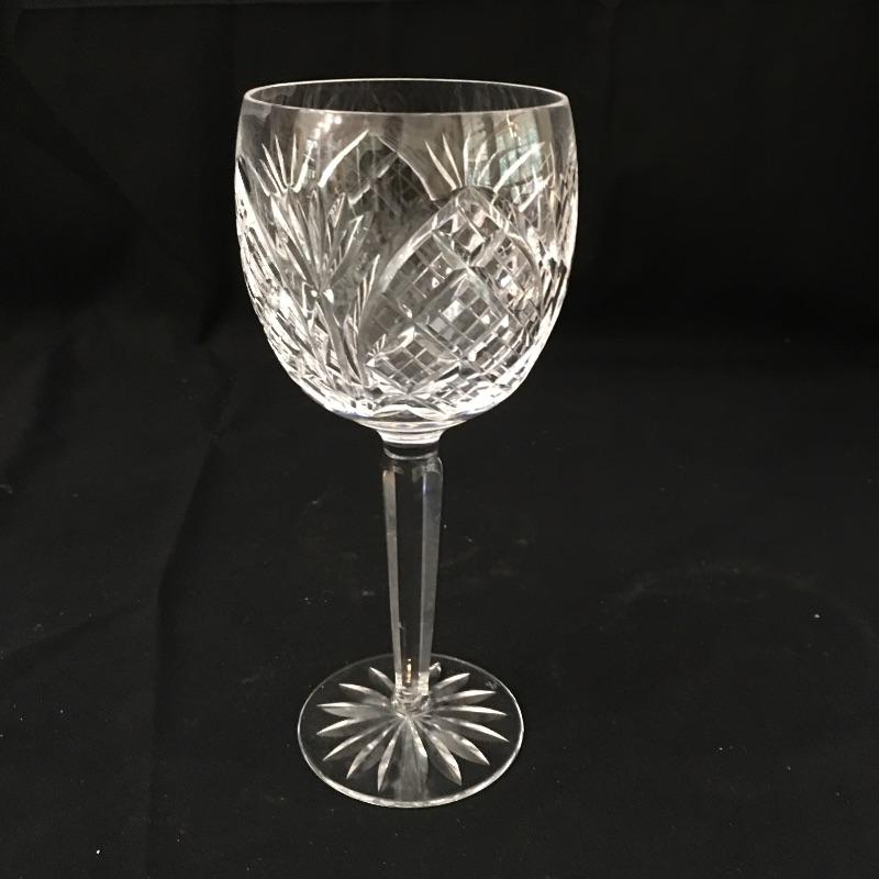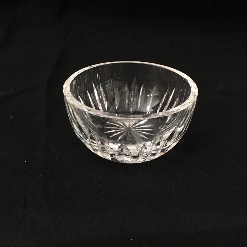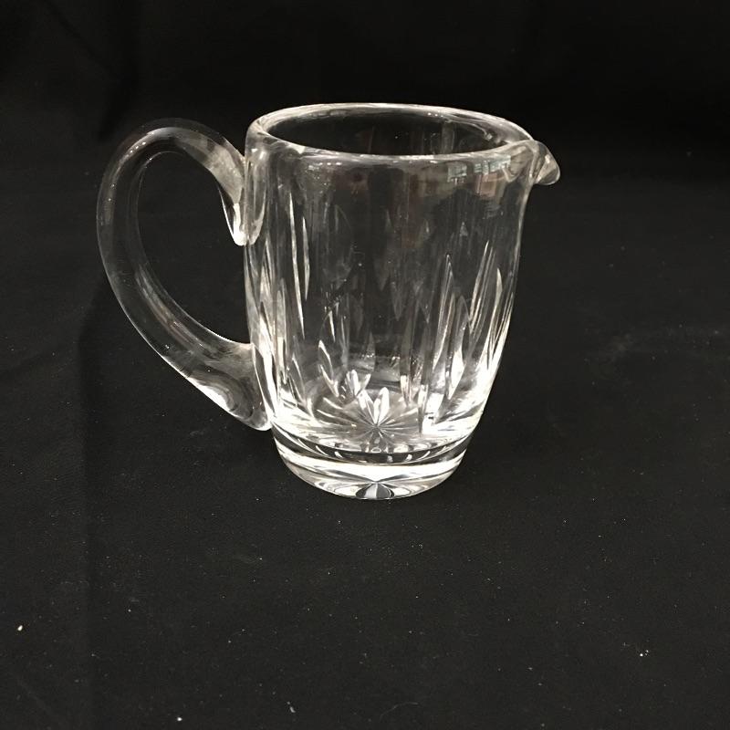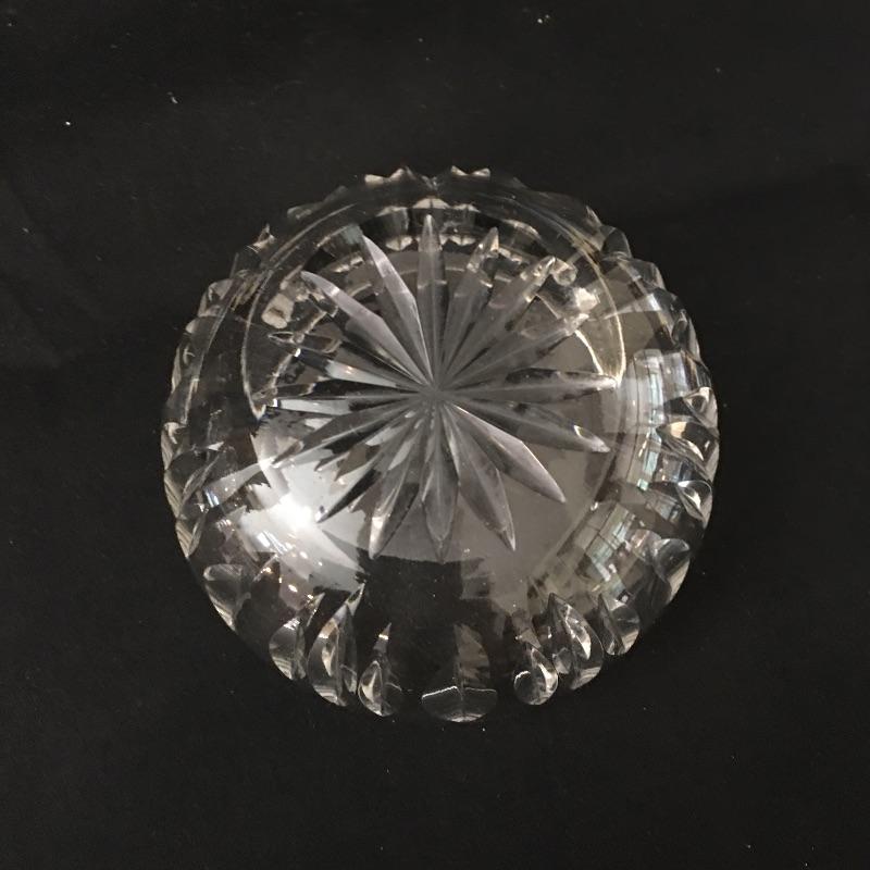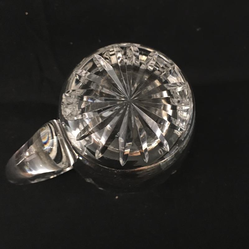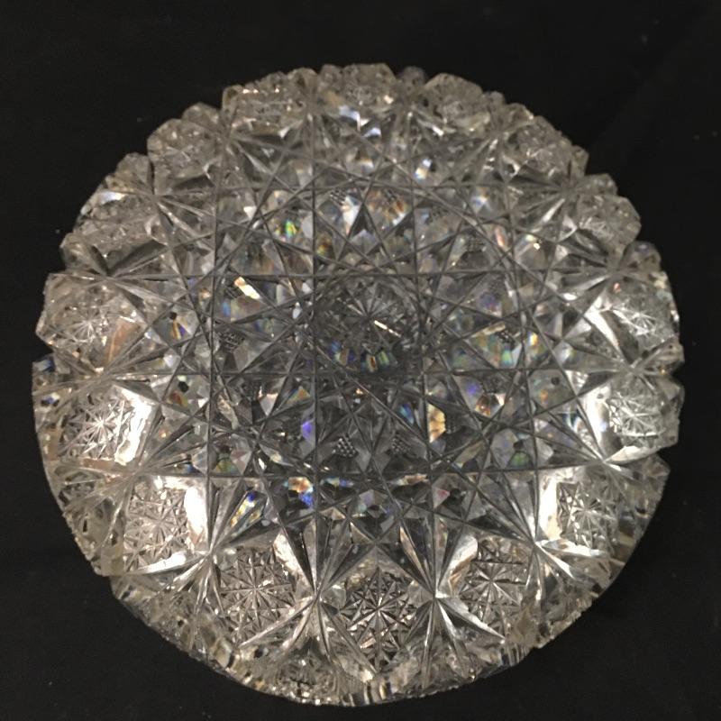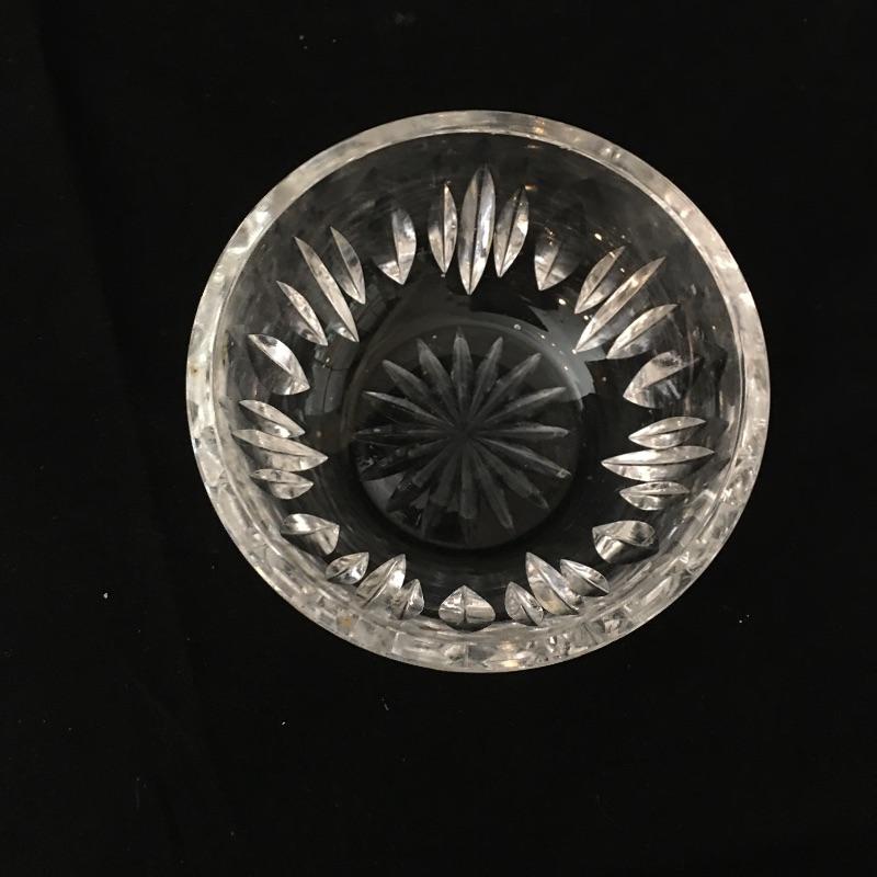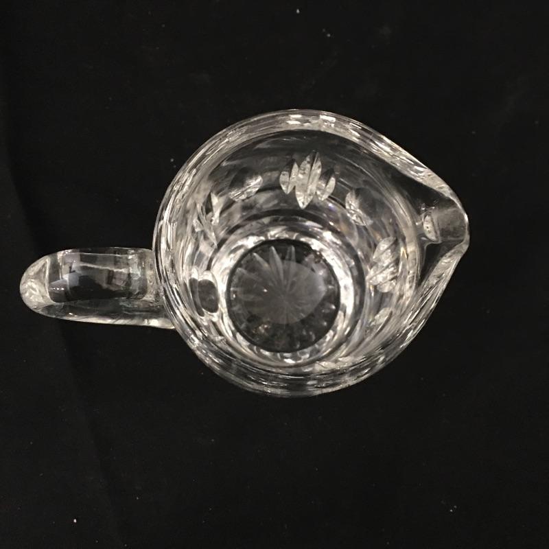 Cut glass collection. Lot includes bowl with Russian starburst design, pitcher, footed goblet signed STC (zoom the image showing bottom of glass), small bowl and mug. Pitcher measures 6.5”D x 8” tall.