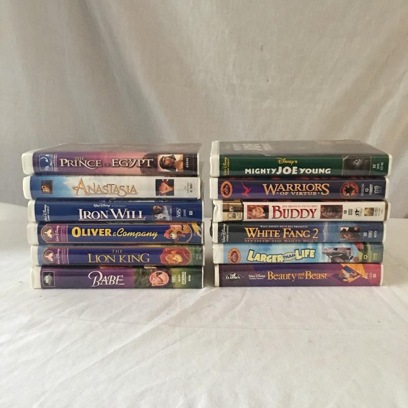 Disney and more VHS movies includes Anastasia, Babe, Warriors of Virtue, The Prince of Virtue, The Lion King, Iron Will, Oliver and Company, Mighty Joe Young, Beauty and the Beast, White Fang 2, Buddy and Larger than life. Shipping available