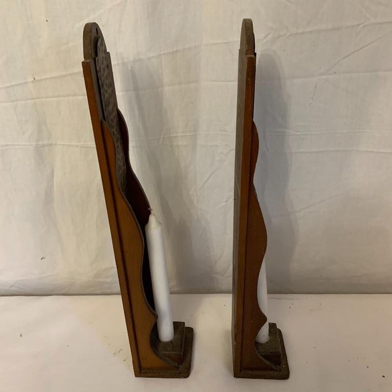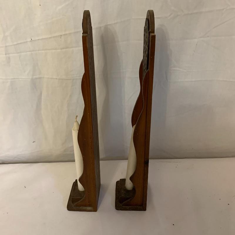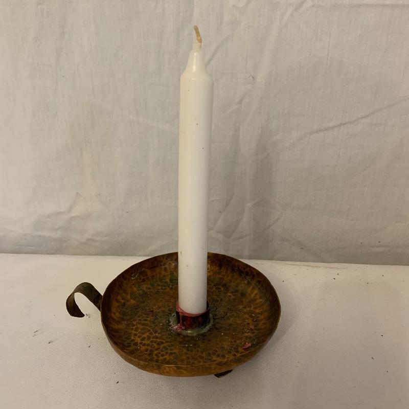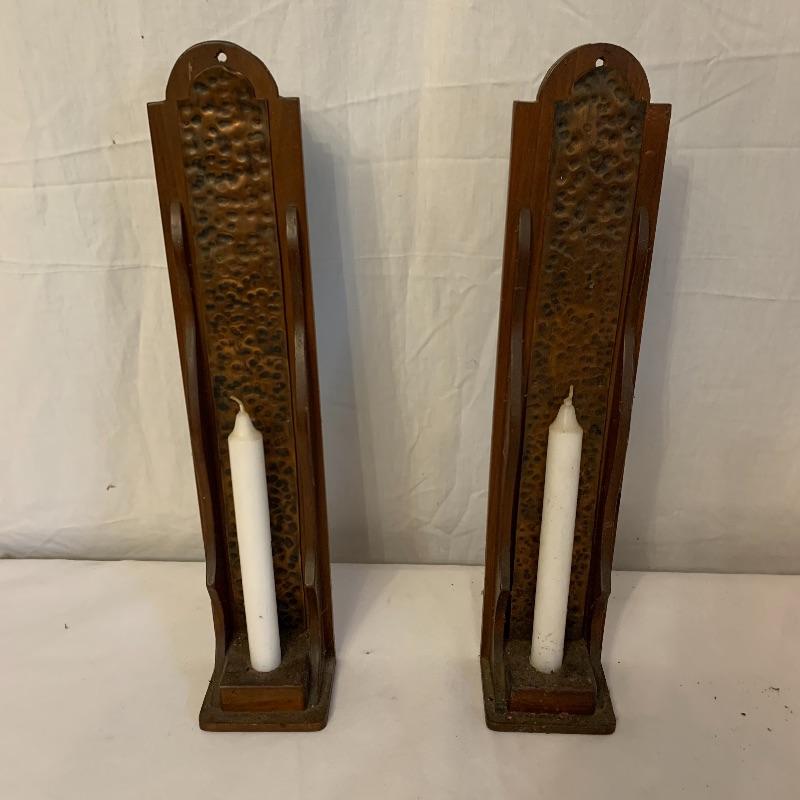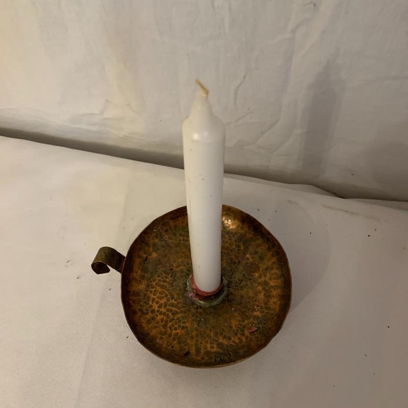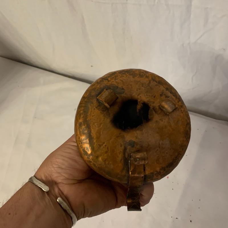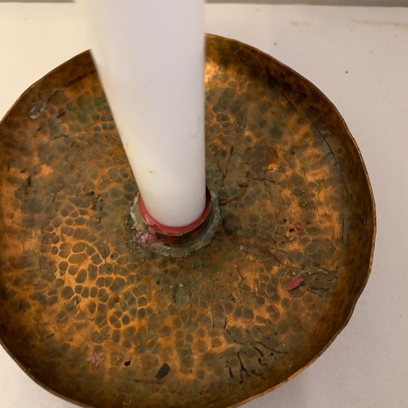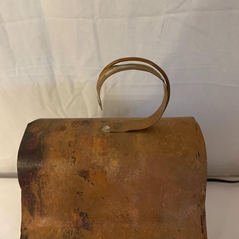 Light up your life with this lovely set of handmade copper candle holders and lantern style light. Everything in this lot is homemade. Lot 46 includes a pair of matching candle holders measuring 18” tall x 3 1/2” wide. These two can be freestanding or hung on a wall. The single candle holder is a bowl style with an adorable little handle and measures 5 1/2 across, and 2” tall. Last but not least is this super cool handmade lantern style light, measuring 12” tall, and 6 1/2 square. It’s in great working condition and features plastic lenses on 2 sides, and a whimsical handle on top. Shipping available.