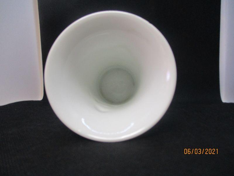 Elegant and beautiful white porcelain vase that is embossed with the same pattern on either side of a floral bouquet. It stands about 4.75" tall and other than a very small and insignificant fleabit on the rim and a hairline crack in the glazing (not in the porcelain) under that chip, it is in excellent condition. The backstamp mark was used between 1970-1990.