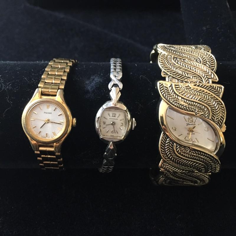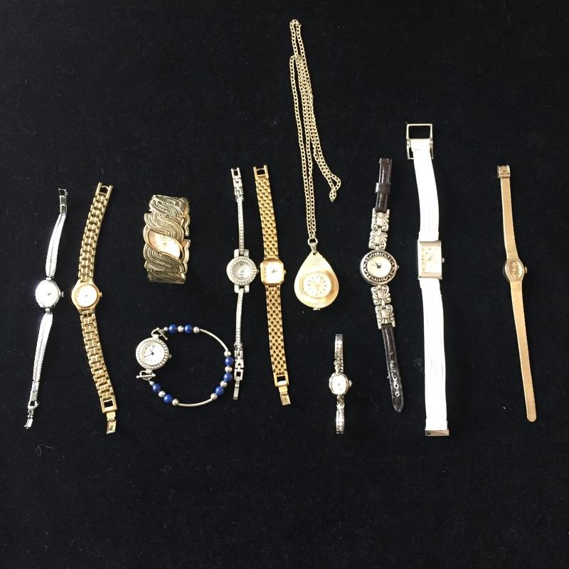 One Dozen watches includes Seiko, Pulsar, Geneva, Timex and more. Most are wrist watches but one is a pendant. Cannot verify all are in working condition but appear to be well kept and in good condition.