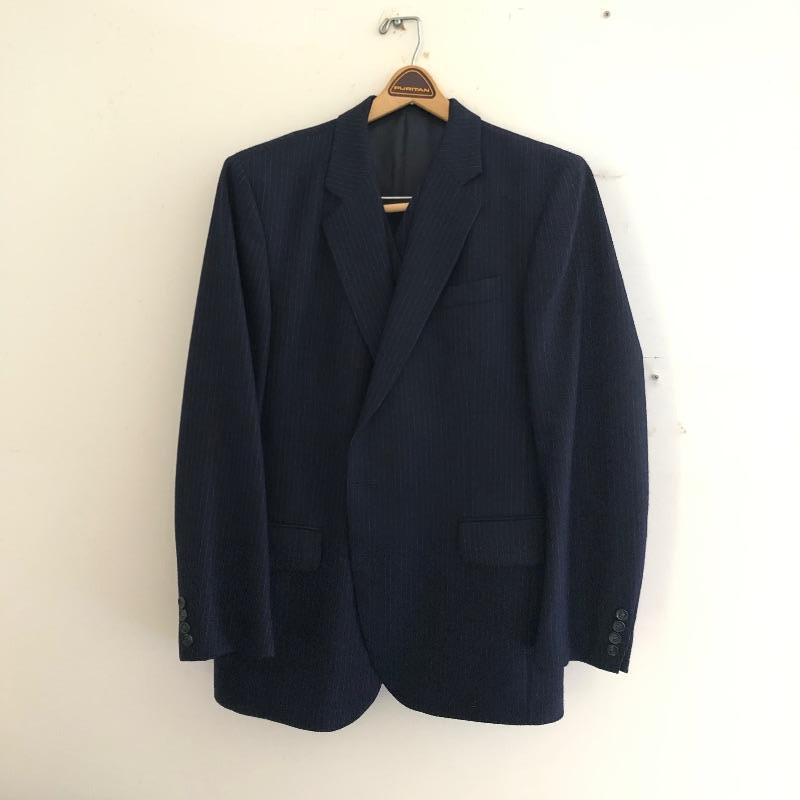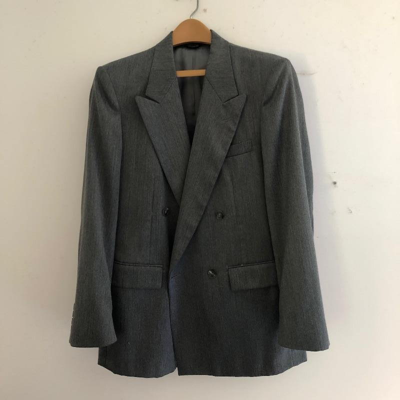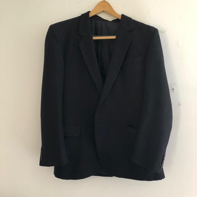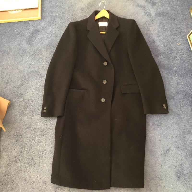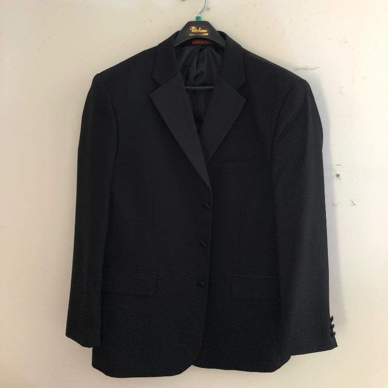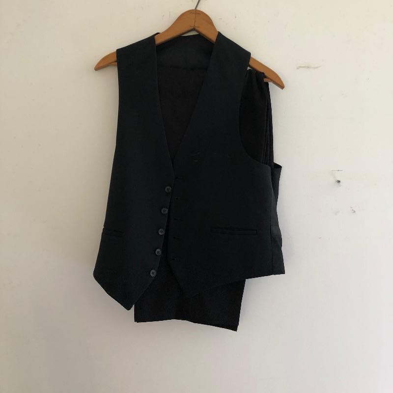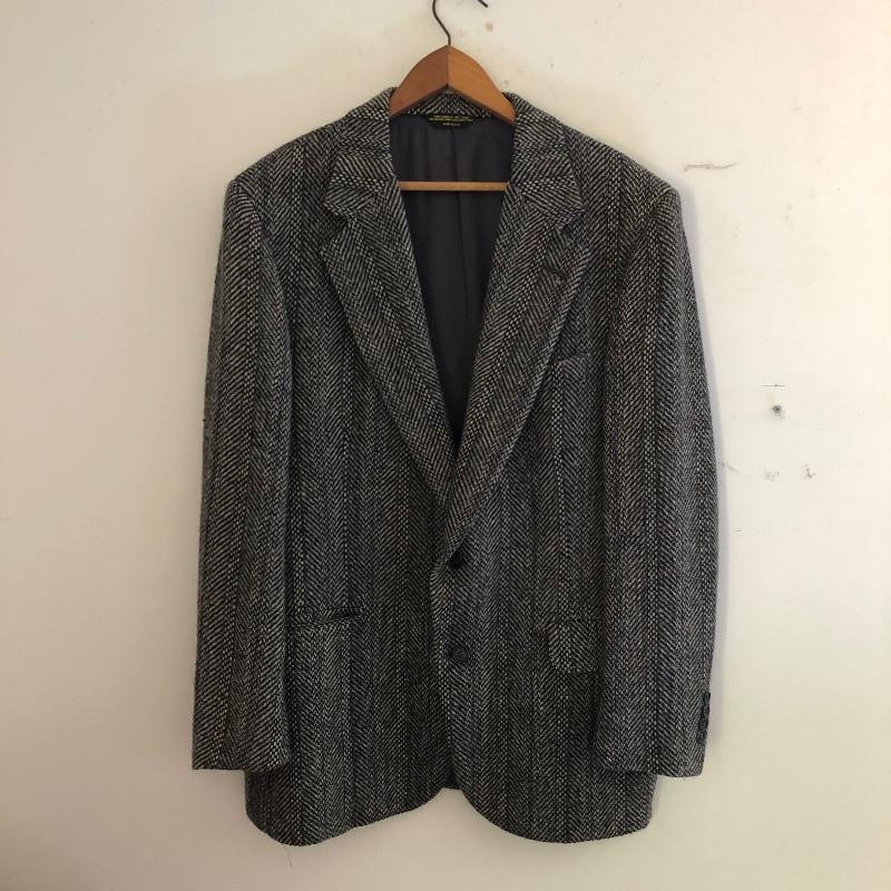 Two high end wool coats, oodles of suits, waistcoats and more here. The camel colored merino wool coat is made in England, the pocket has a row of the letter SSSSS’s on it, which might be the logo for the brand? No size was found but it measures approximately 20” across shoulders, 25” across chest and 30” at waist. The other coat is 100% wool Pierre Cardin and appears to be a similar size. Over 10 suit’s that include name brands such as Calvin Klein, Arnold Palmer and much more. Pants appear to be approximately 34” waist, 30” inseam and suit jackets approximately 19” shoulder, 21” chest and 23” hip.