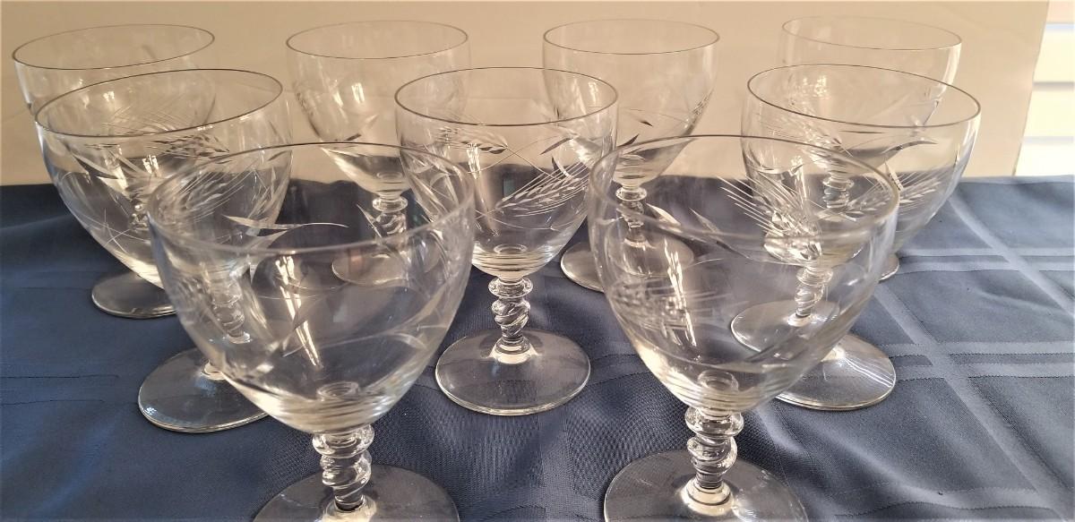 Lot #46 Lot of vintage crystal goblets - acid etched wheat pattern