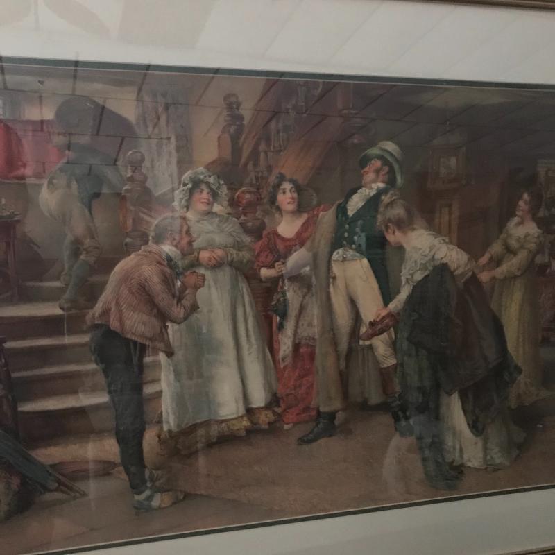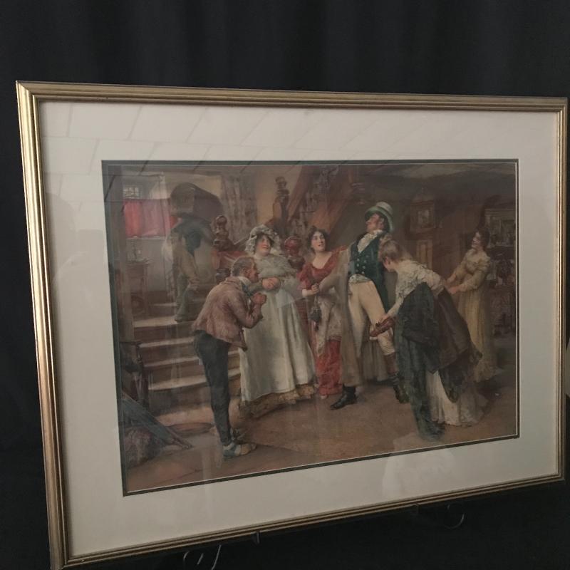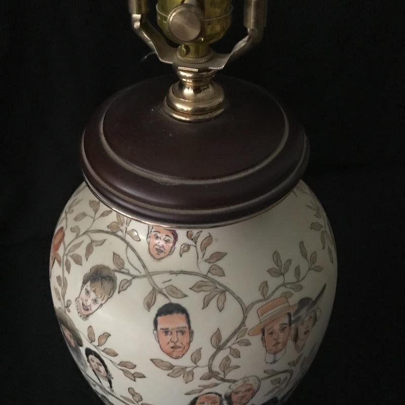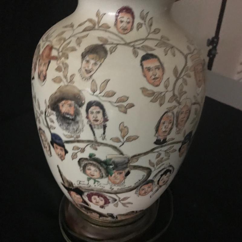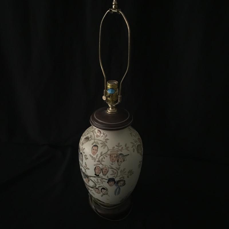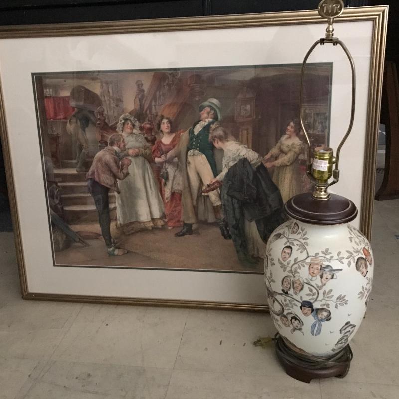 Norman Rockwell “Family Tree” Lamp with "NR" initial. Lamp stands 29” tall and approx. 9” in diameter at widest part. Print is of an antebellum scene, double matted and framed nicely, measuring 36” x 28”. This lot is available for local pick up in Maggie Valley, only.