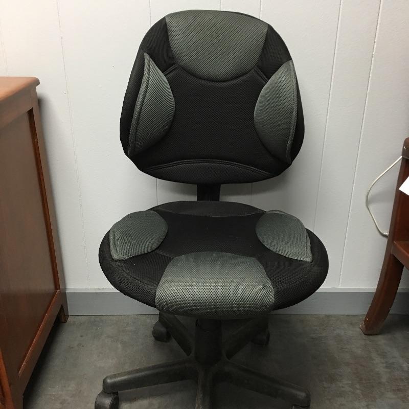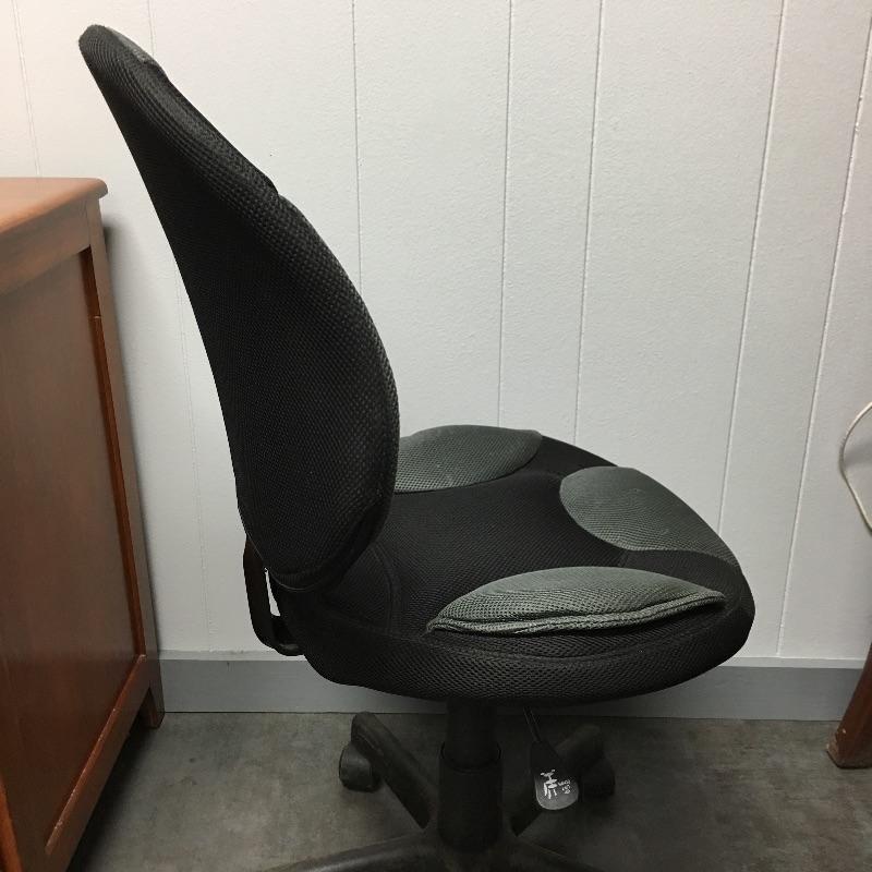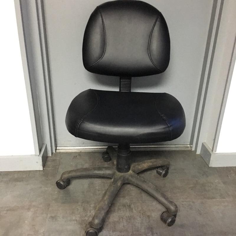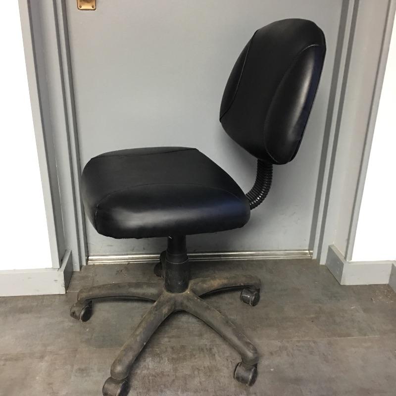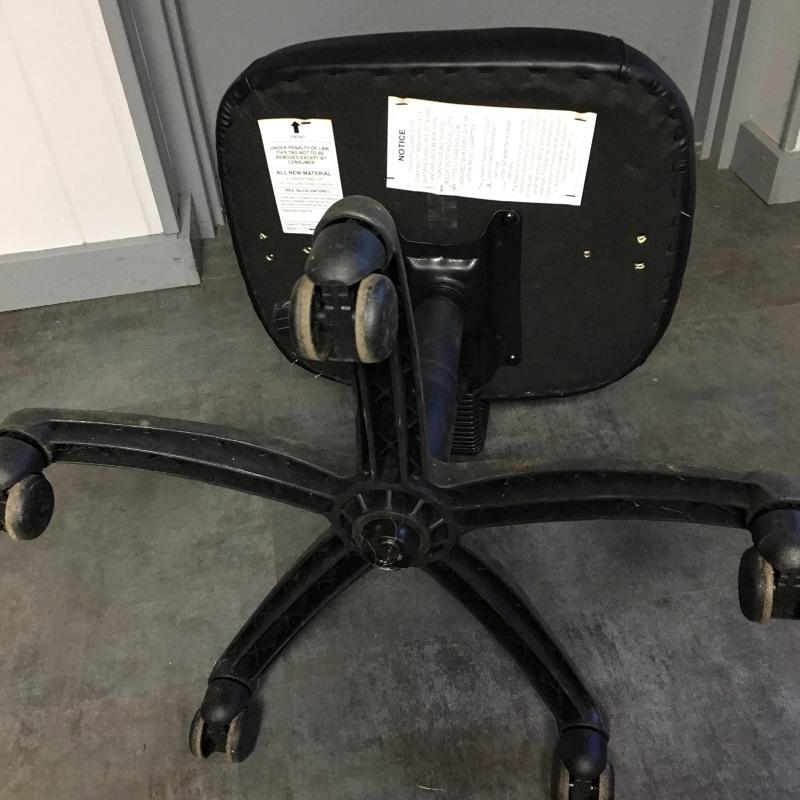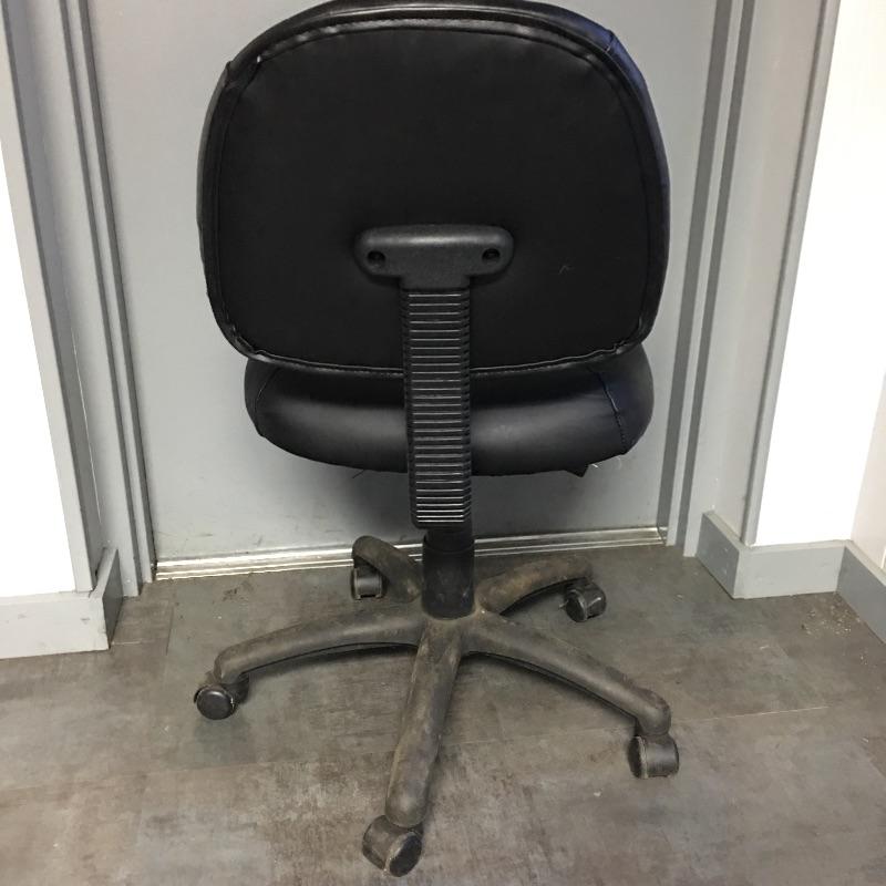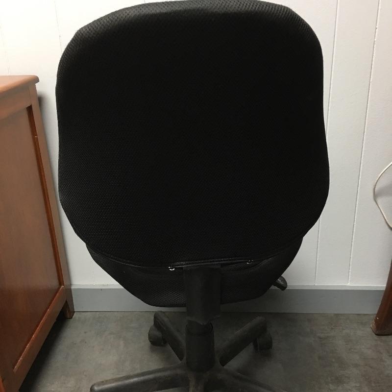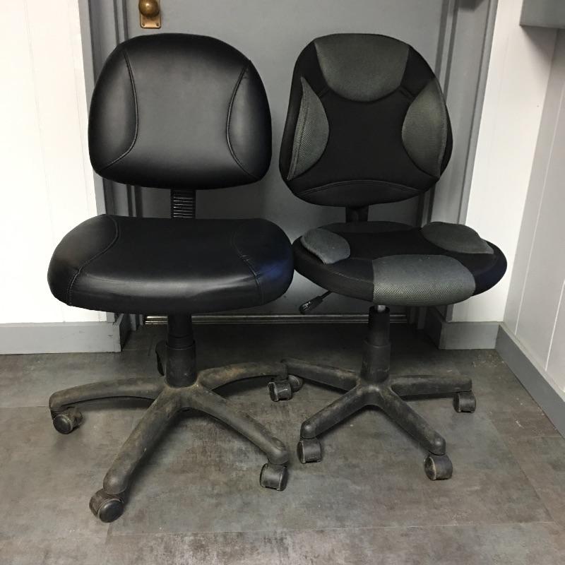 Pair of black swivel chairs. Sit back and relax in these nice comfortable office chairs. Chairs have a few blemishes, see pictures. Largest chair measures 20” x 21” x 35” with an adjustable seat height.