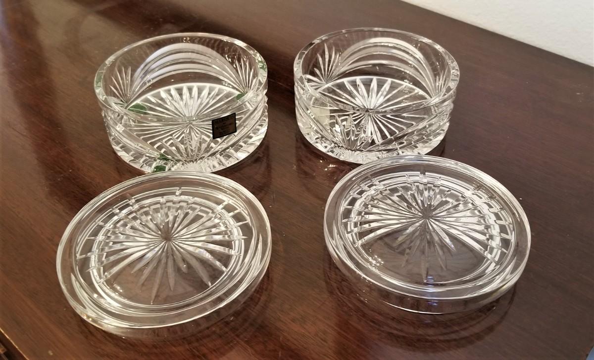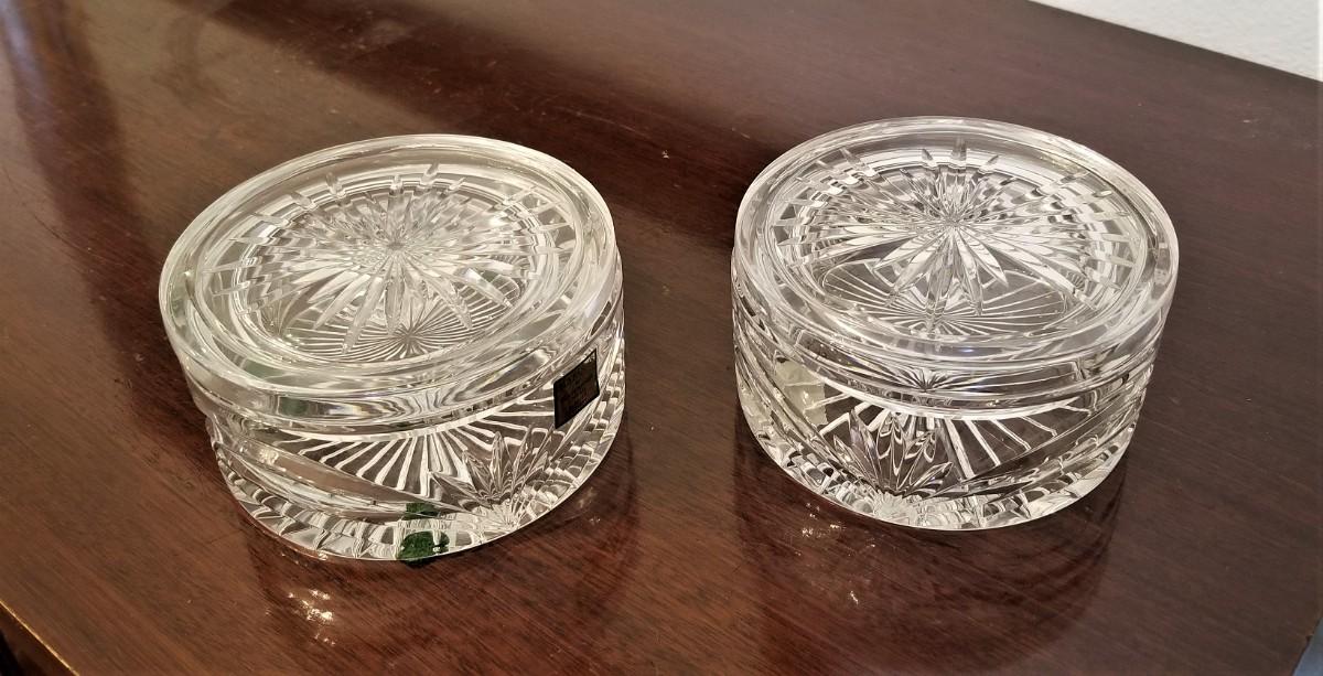 Pair of matching Waterford Marquis crystal dresser jars or trinket dishes. Nice condition.