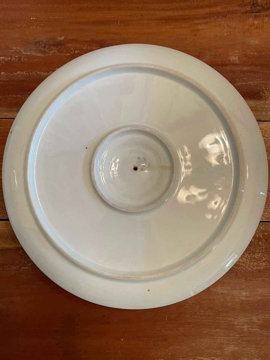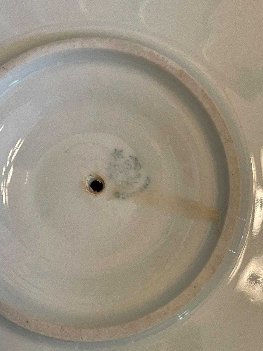 Has a small hole underneath the bottom plate. Both top and bottom dishes are seamlessly fused together.