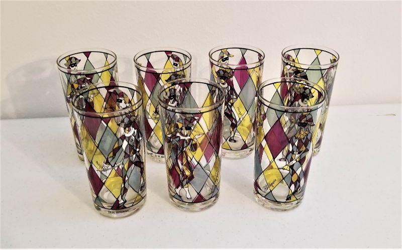 Lot #46 Set of Seven Retired "Harlequin" Hi-Ball glasses - vintage barware