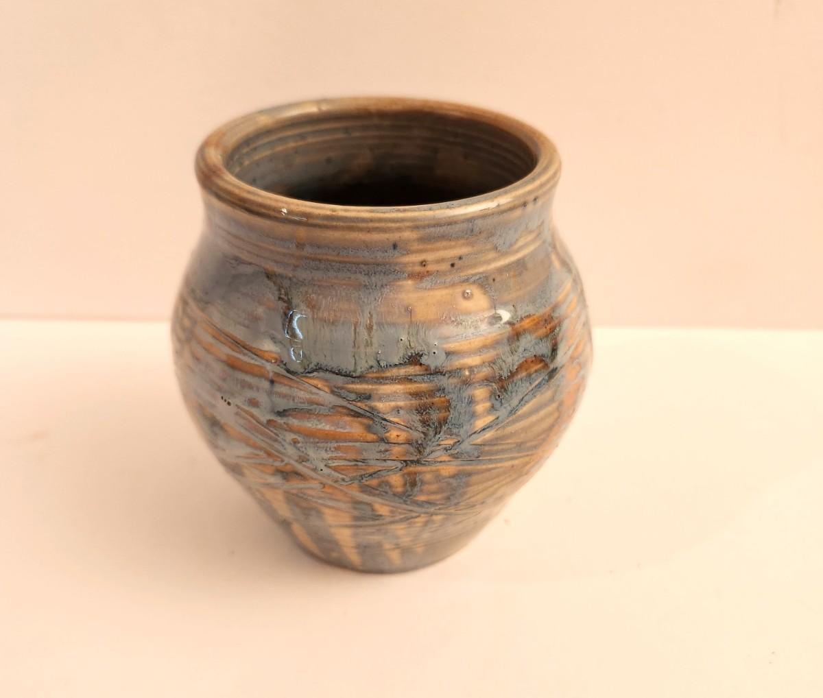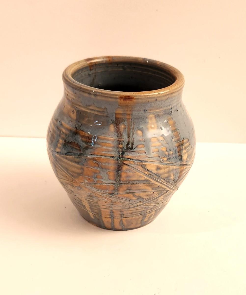 Good looking studio art pottery pot/vessel - dated 2004, signed. 4" tall, good condition.