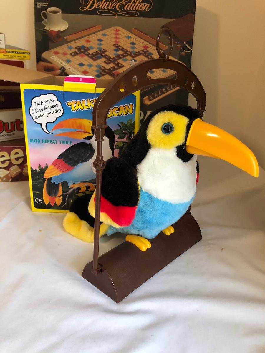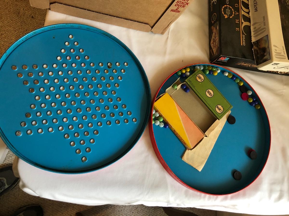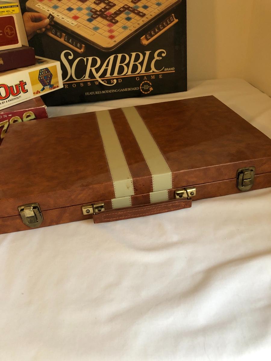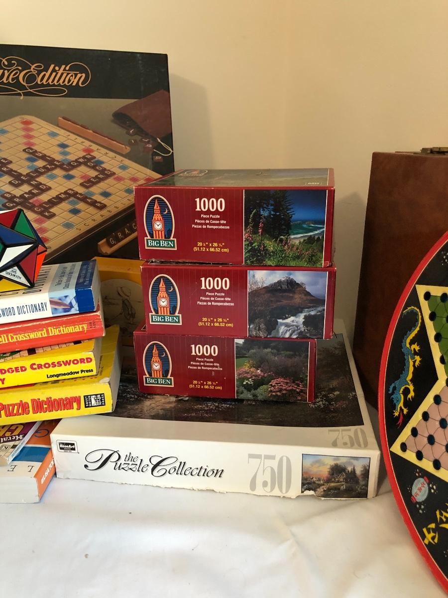 We have a great assortment of both vintage and newer games for you here. Lots of puzzles, playing cards, crossword puzzle dictionaries and much more in the more modern items that even includes a talking Toucan (not tested as batteries are dead). The vintage items includes a beautifully preserved traveling Backgammon briefcase which measures 12” x 18” x 2.5”, Dominoes, Scrabble, Chinese Checkers & more.