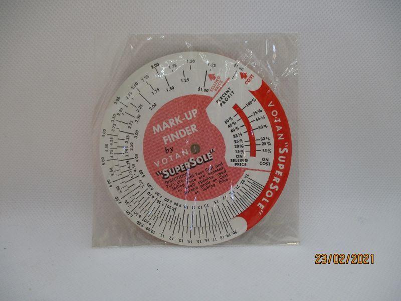 I believe that this is from the 1950s-1960s when there were door-to-door salemen. This wheel allows the seller to see what their profit will be when they sell the shoes.