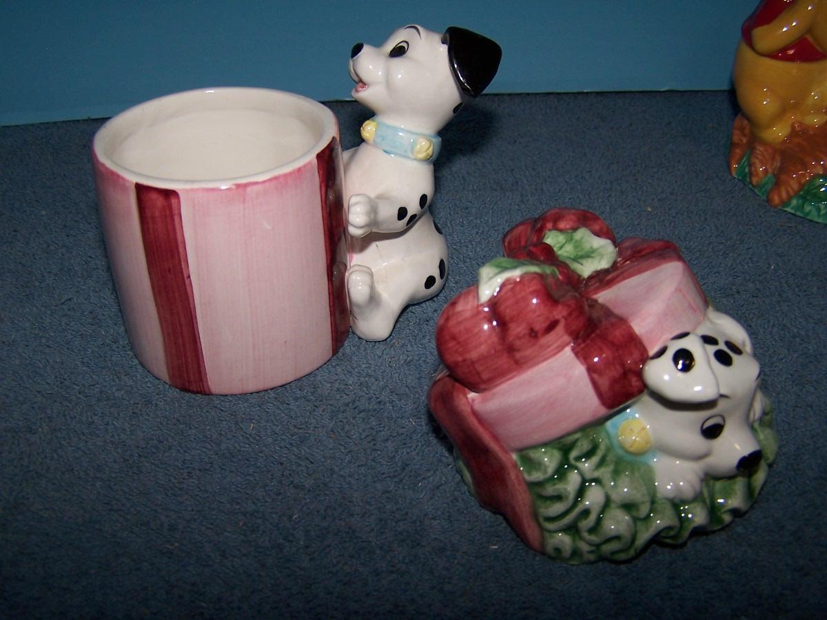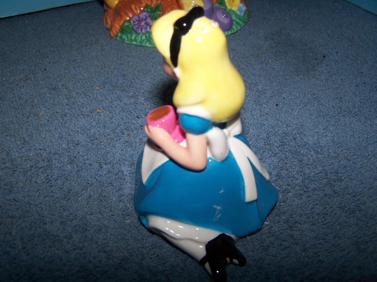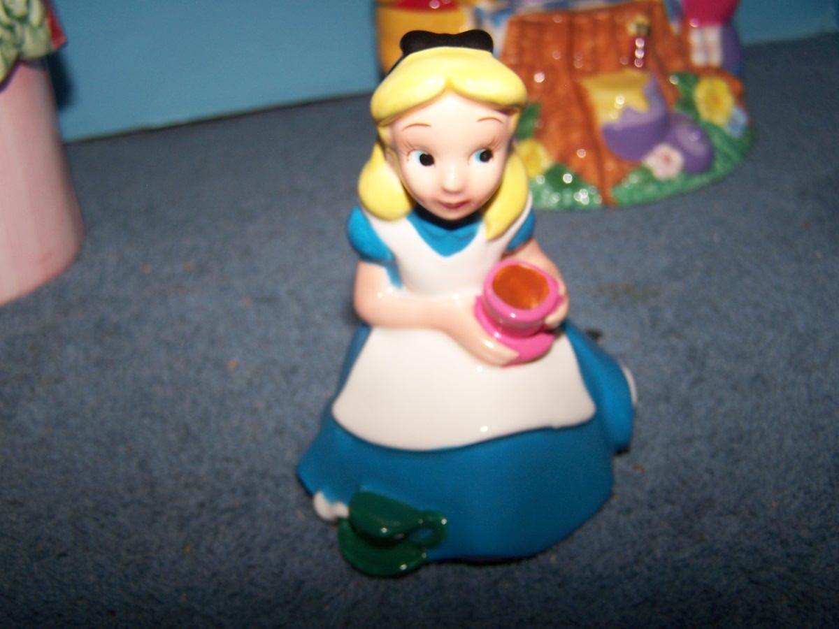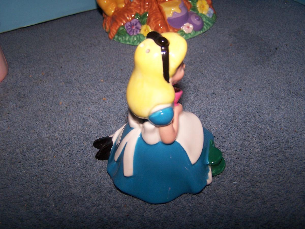 THIS IS WONDERFUL COLLECTABLE DISNEY!!! ALICE SHAKER IS 3 1/2'' TALL.. DALMATIAN JAR HAS A TINY FLAKE... OTHERWISE, SLIGHT WEAR..