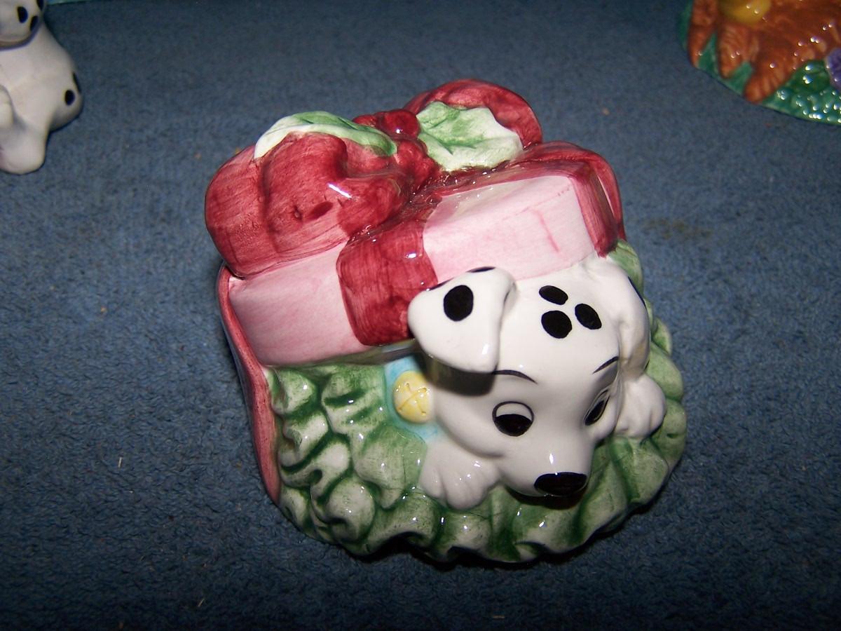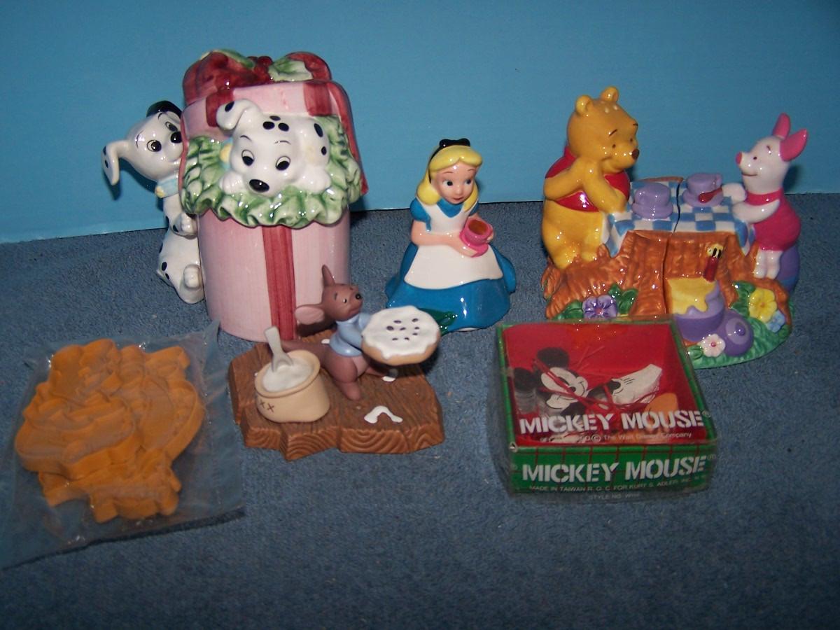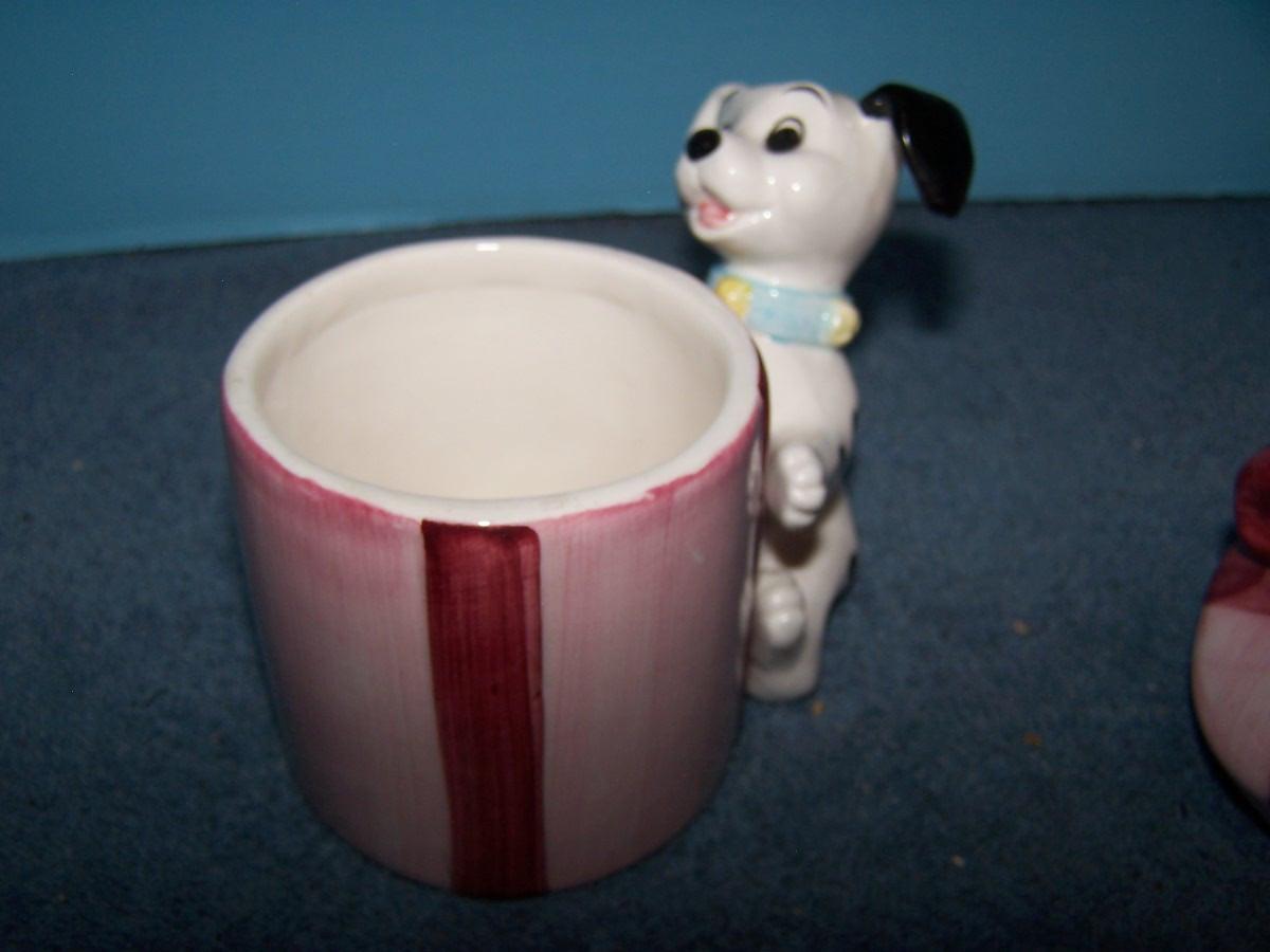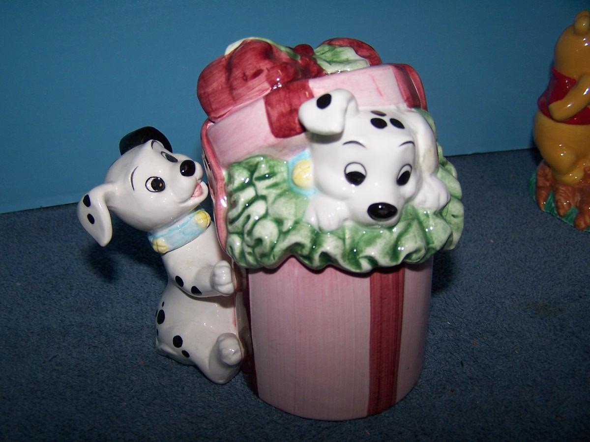 THIS IS WONDERFUL COLLECTABLE DISNEY!!! ALICE SHAKER IS 3 1/2'' TALL.. DALMATIAN JAR HAS A TINY FLAKE... OTHERWISE, SLIGHT WEAR..