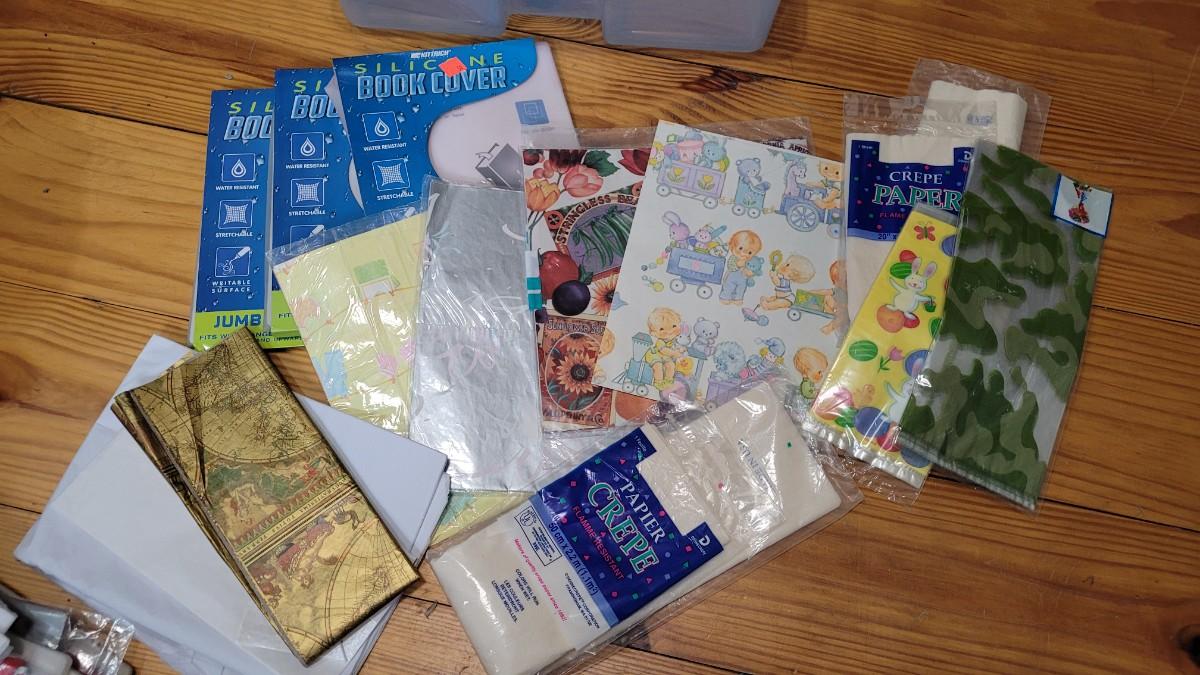 Lot 460: Assortment of Deco Paper and Silicone Book Covers (Plastic Bin included)
