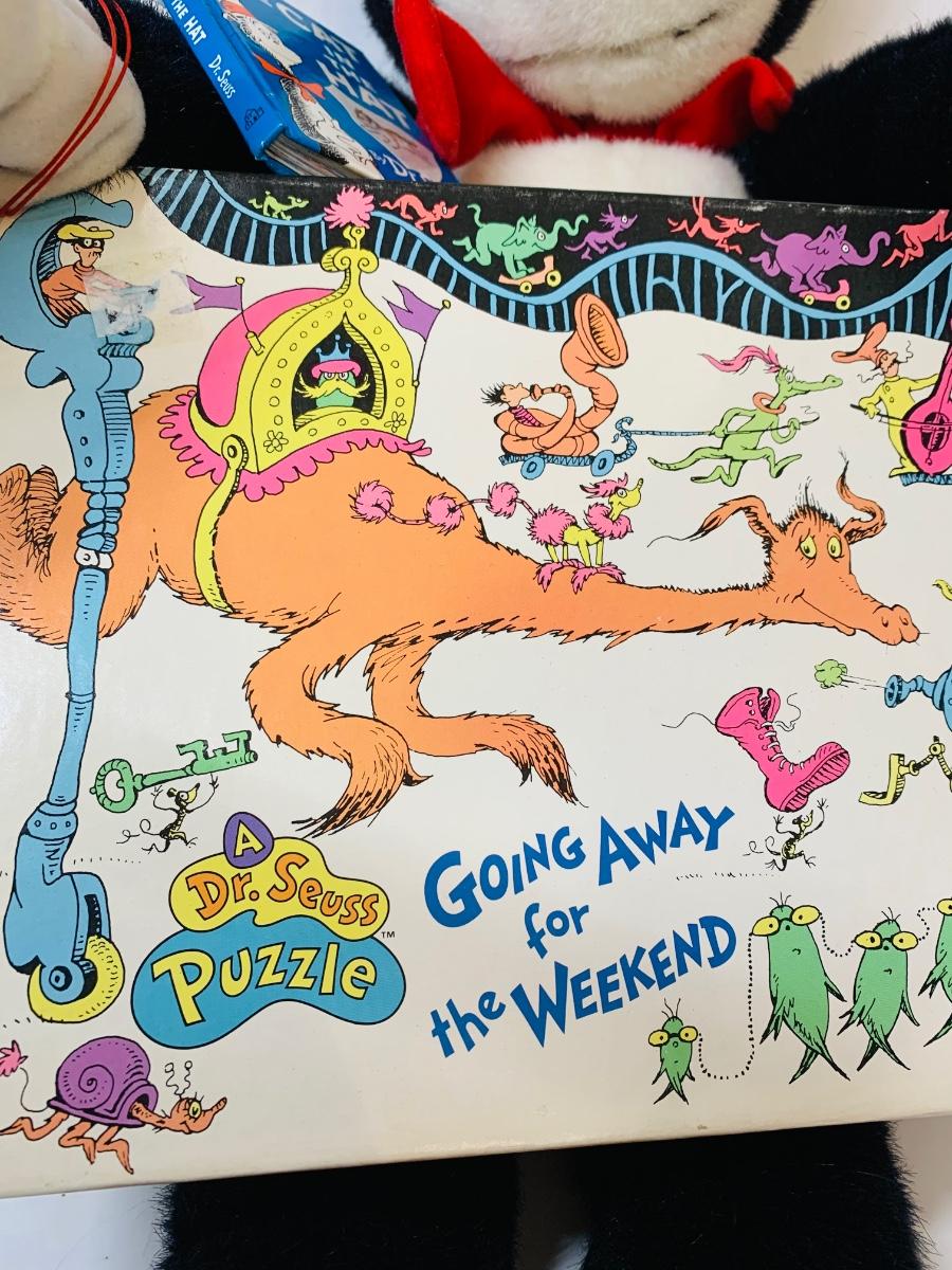 Great stuffed Cat in the Hat with a mini book along with a vintage Going Away for the Weekend puzzle. The puzzle does have all of its pieces (pictured)...