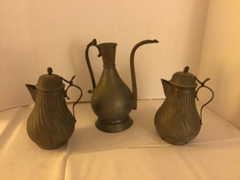 3 TIN PITCHERS