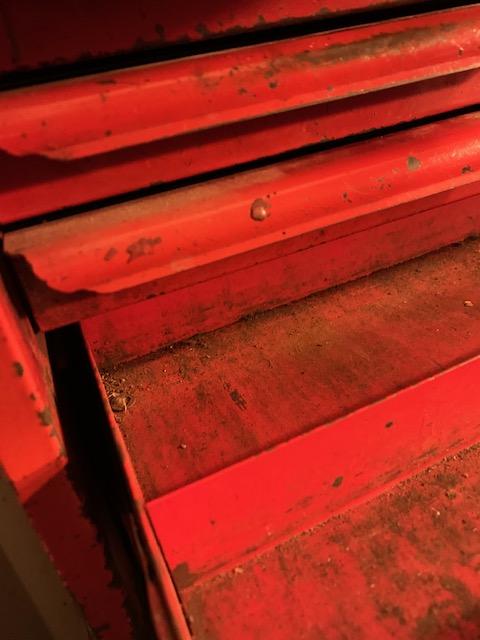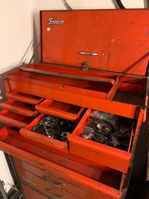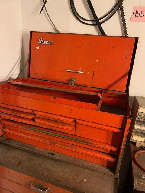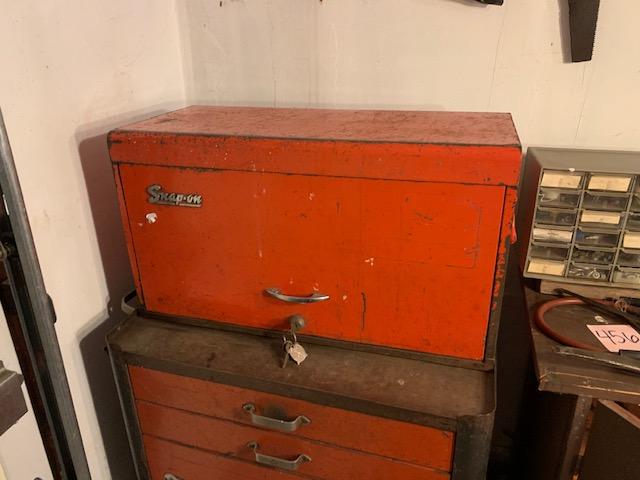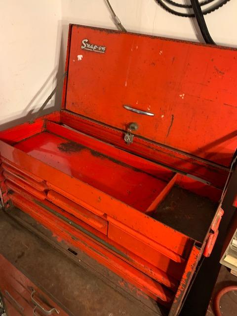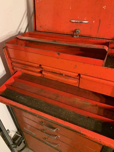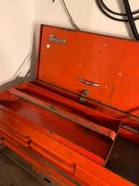 Snap - On vintage locking tool box ONLY includes the top Snap-On tool box (2nd to bottom drawer is off the track).