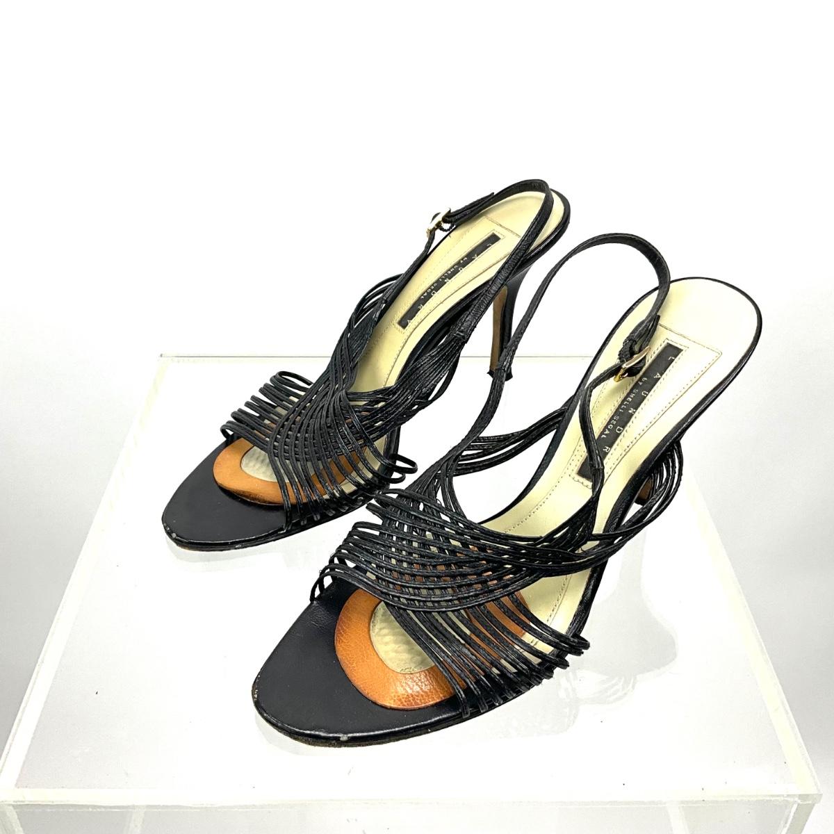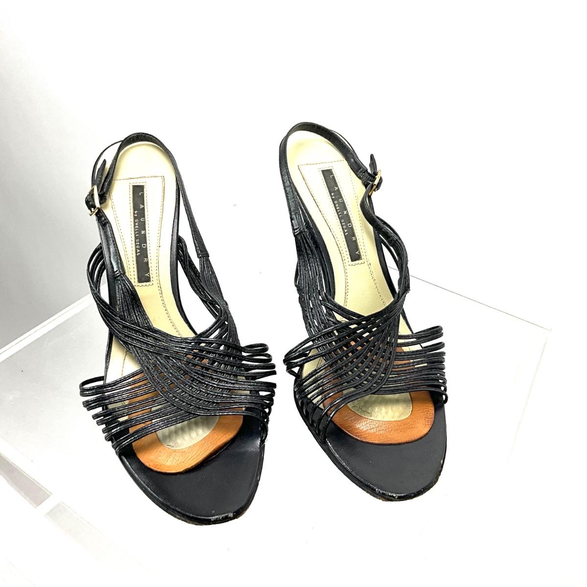 Lot 461 Laundry by Shelli Segal, Black Leather Strappy Sling Back Heels ( Size 9M )