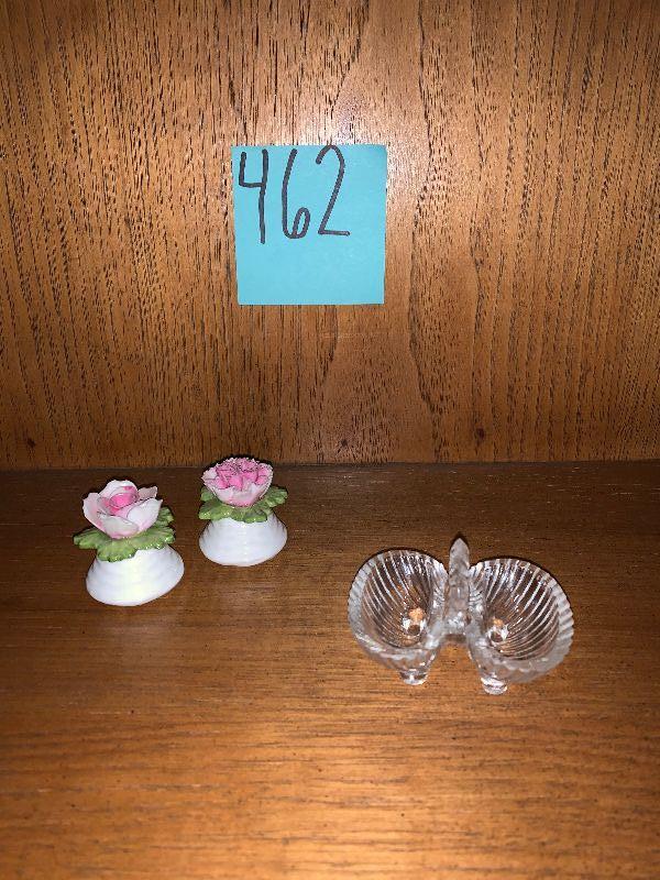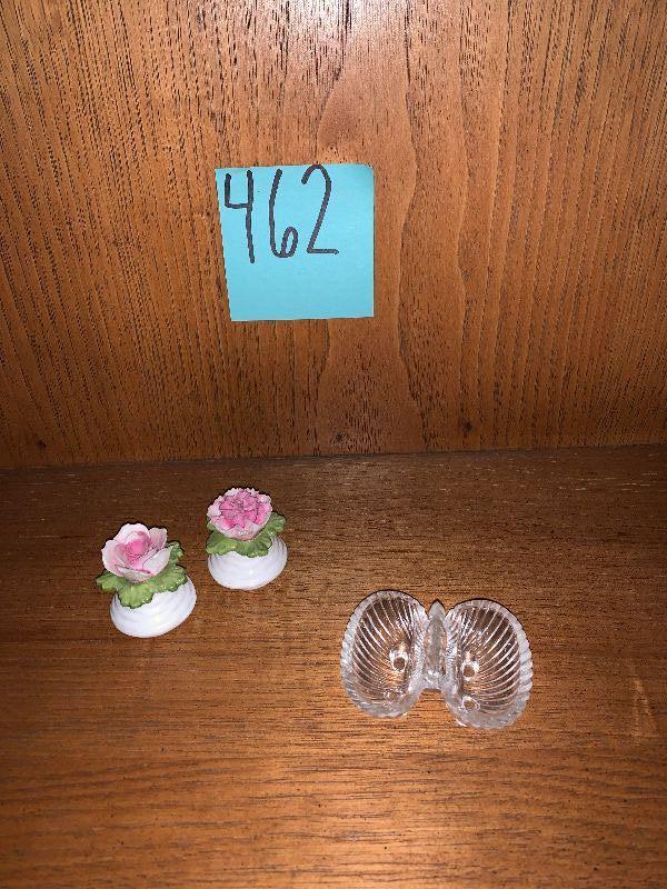 3 items salt and pepper, and tiny 2 sided dish