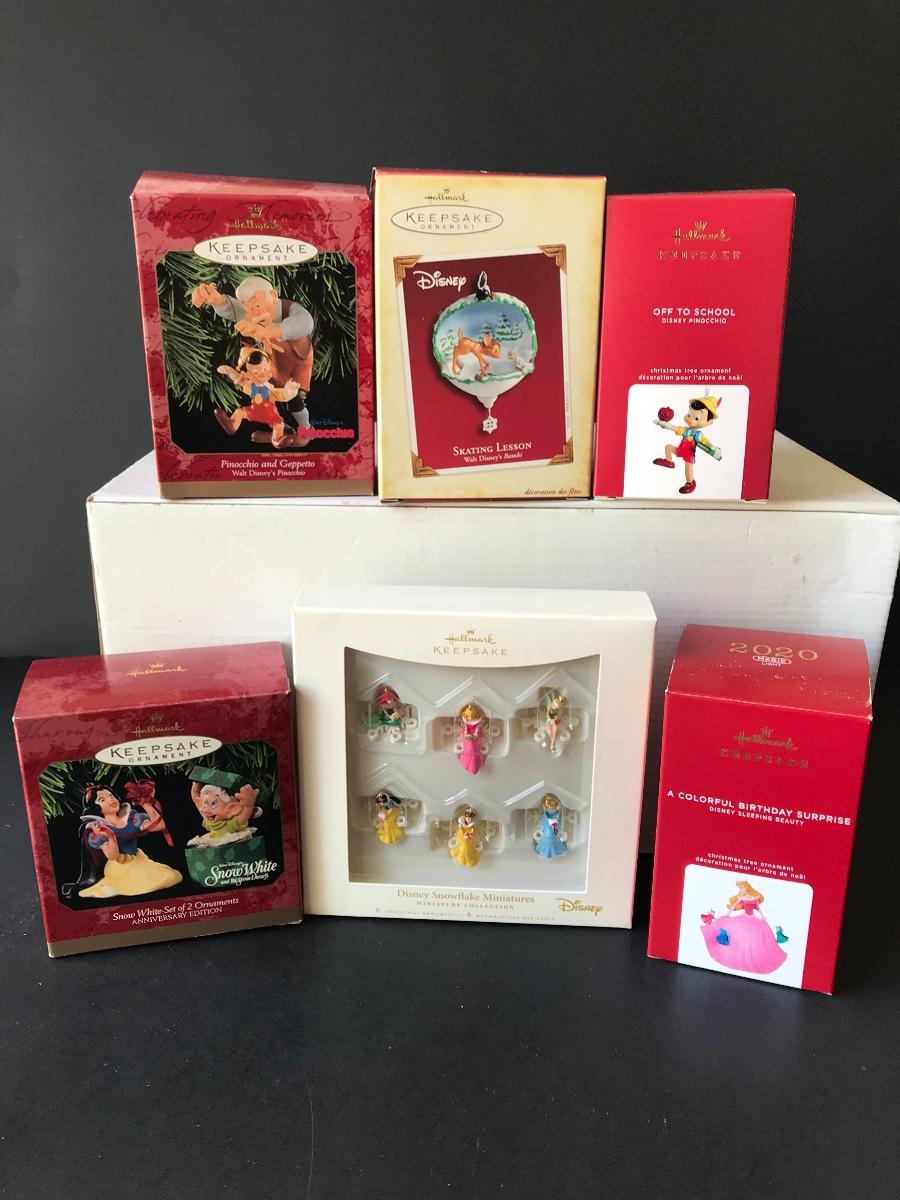 Lot 462: Disney Hallmark Christmas Ornaments - Princesses, Bambi, Pinocchio