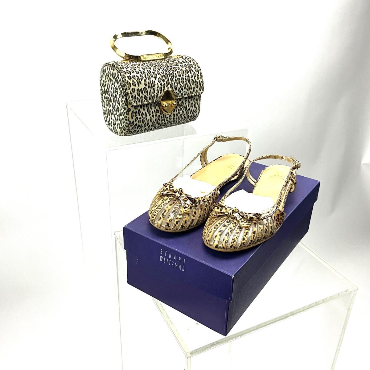 Lot 462   Cheetah Lot - Stuart Weitzman Chenotracks Size 8 NWB & Adriana Larat Cheetah Gold Toned Handbag
